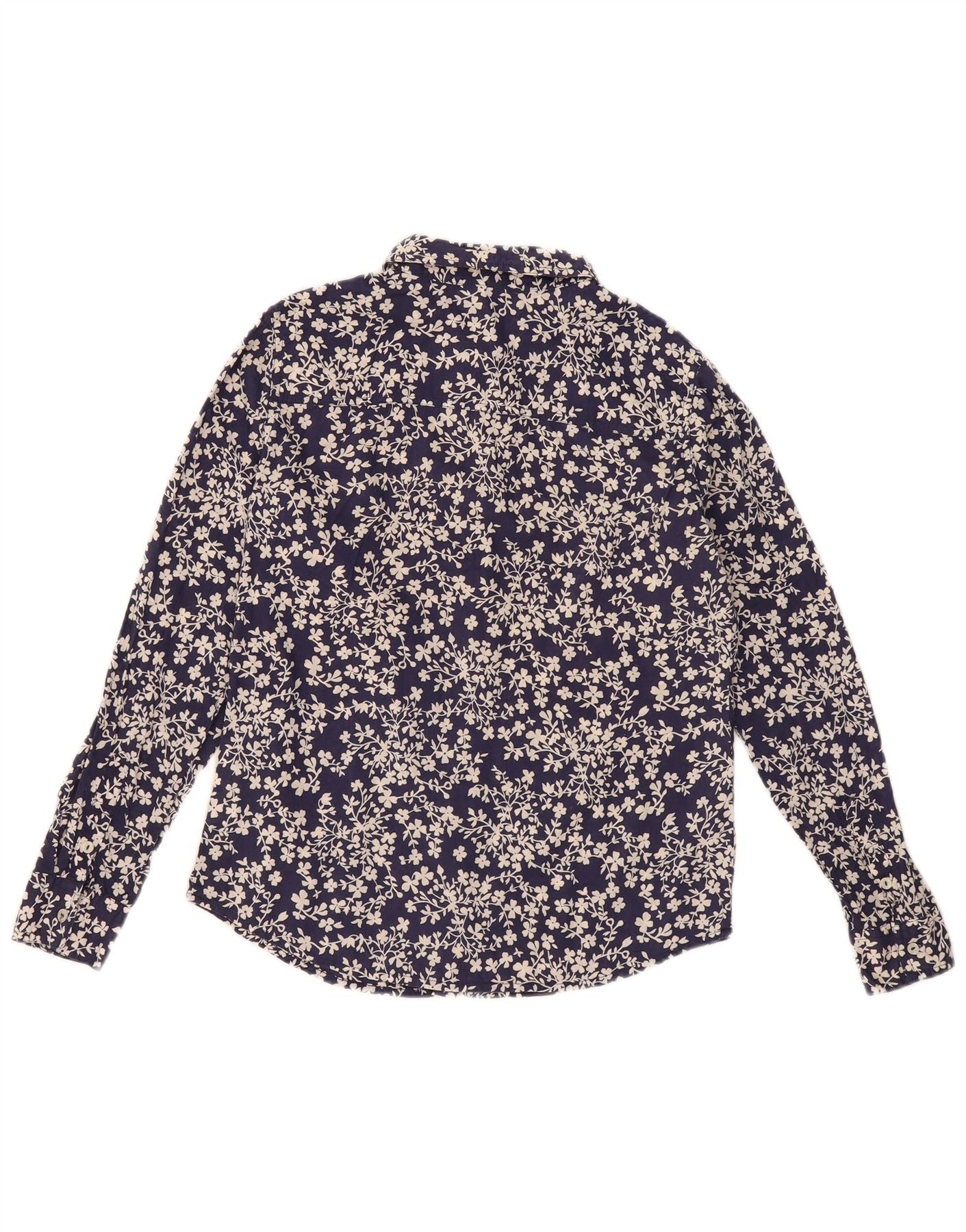 Home > Roupas Vintage Benetton > mulheres > Camisa oversized feminina BENETTON Reino Unido 10 pequeno algodão floral azul marinho