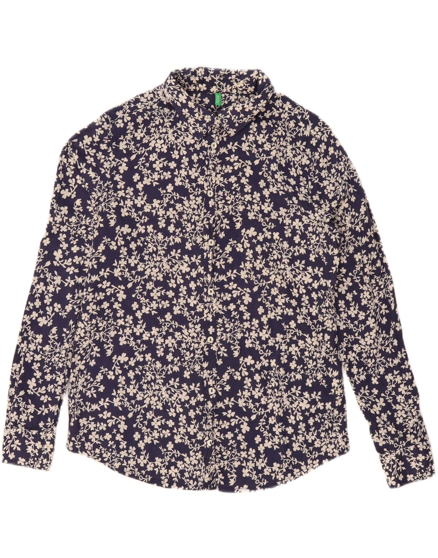 Camisa oversized feminina BENETTON Reino Unido 10 pequeno algodão floral azul marinho