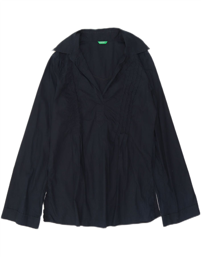 BENETTON Womens Pullover Long Sleeve Shirt Blouse UK 14 Medium Navy Blue