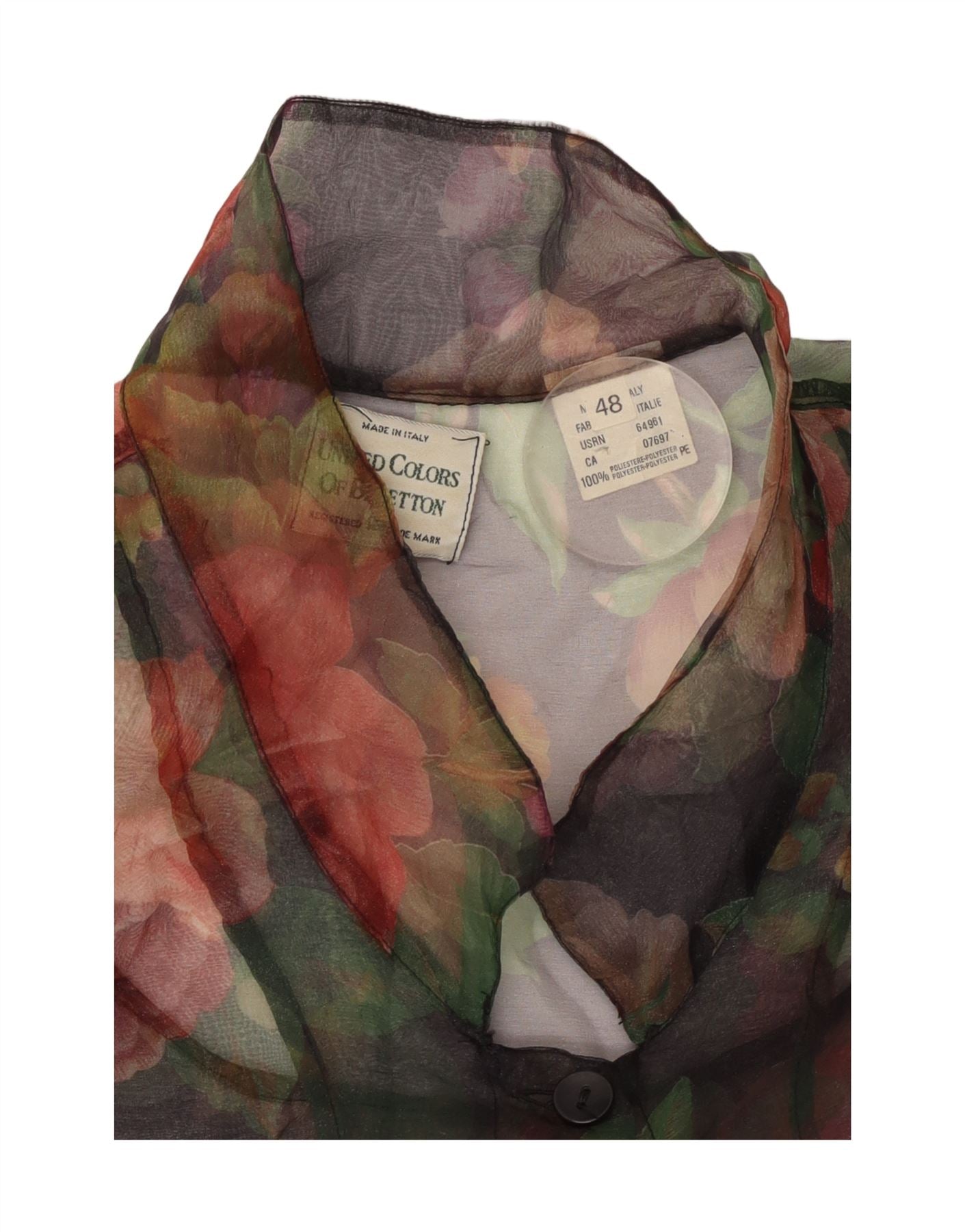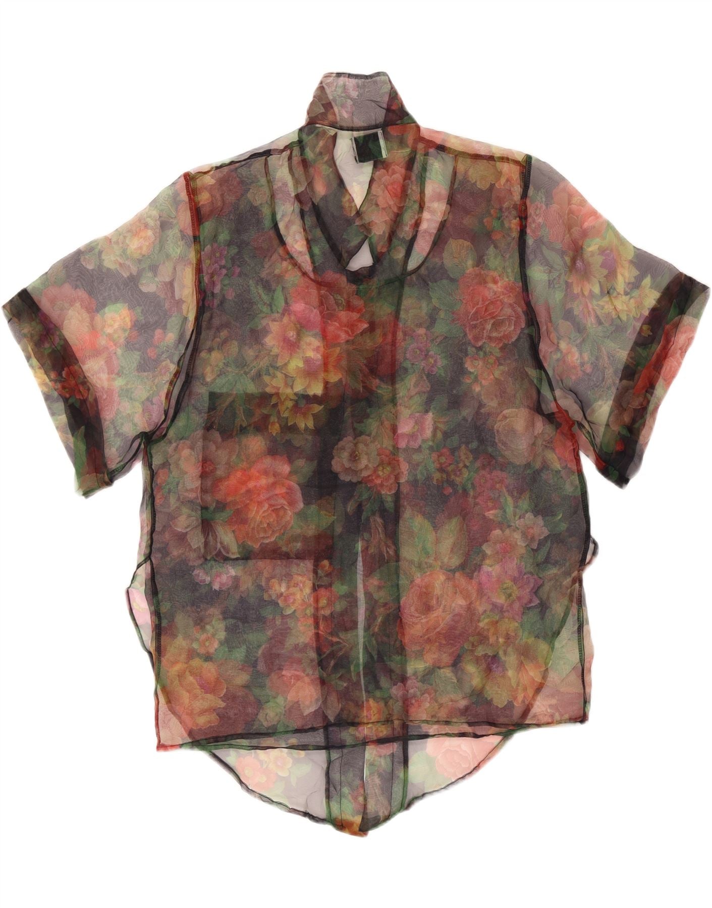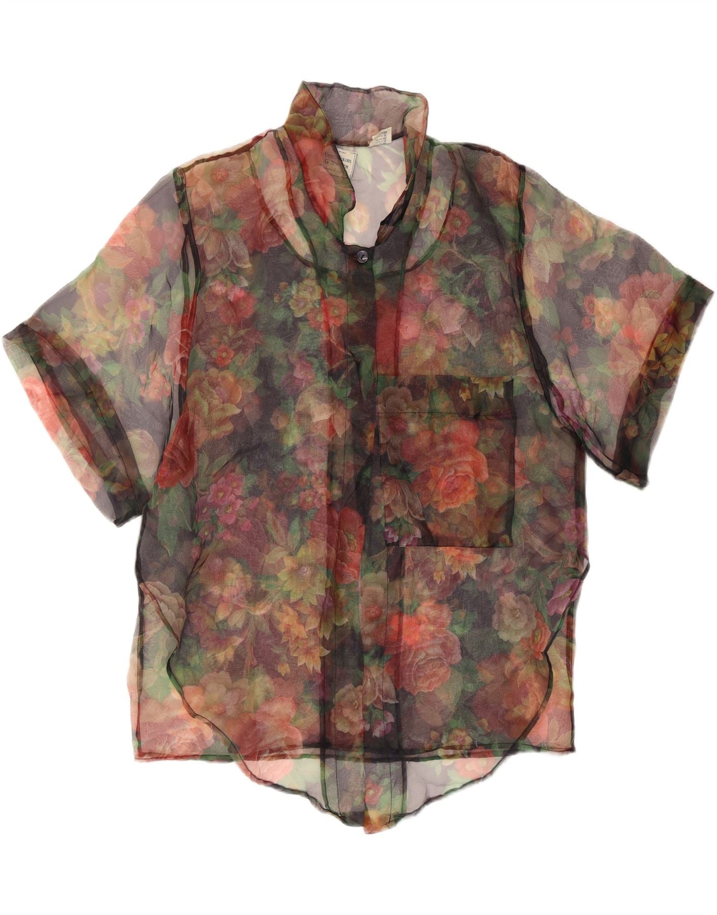 BENETTON Womens See Through Shirt Blouse IT 48 XL Multicoloured Floral