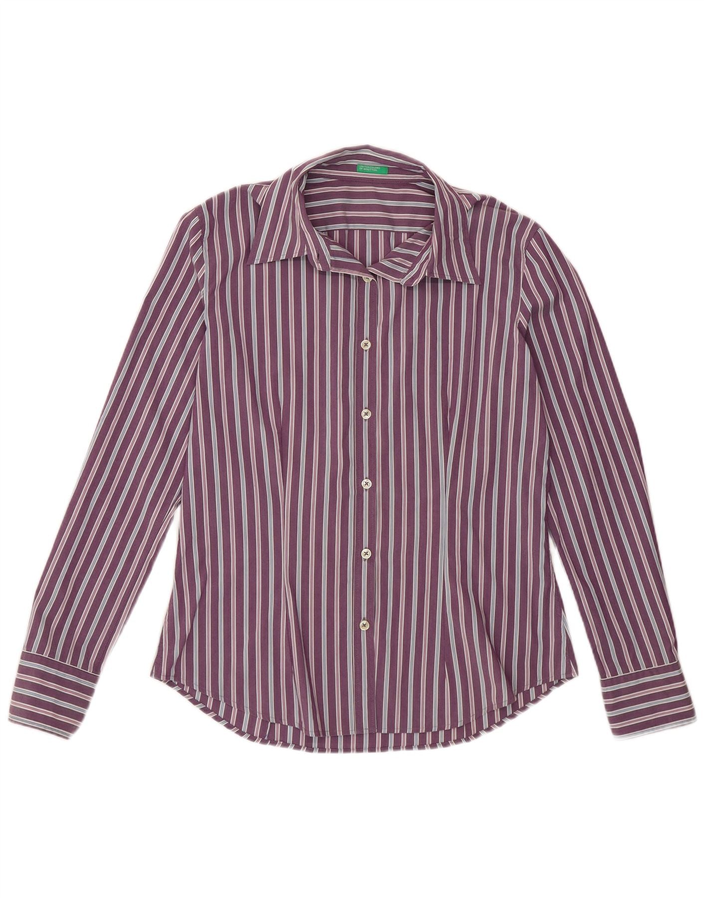 Camisa feminina BENETTON UK 16 grande listrada roxa