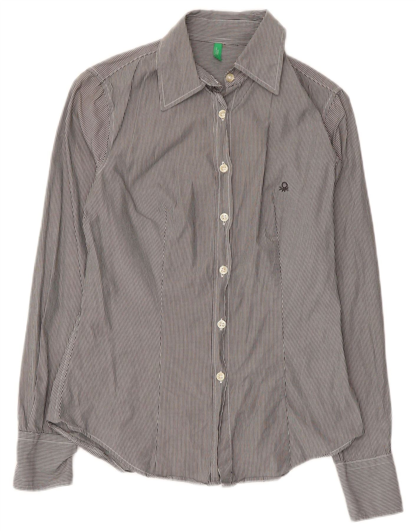 Camisa feminina BENETTON UK 8 pequena listra cinza