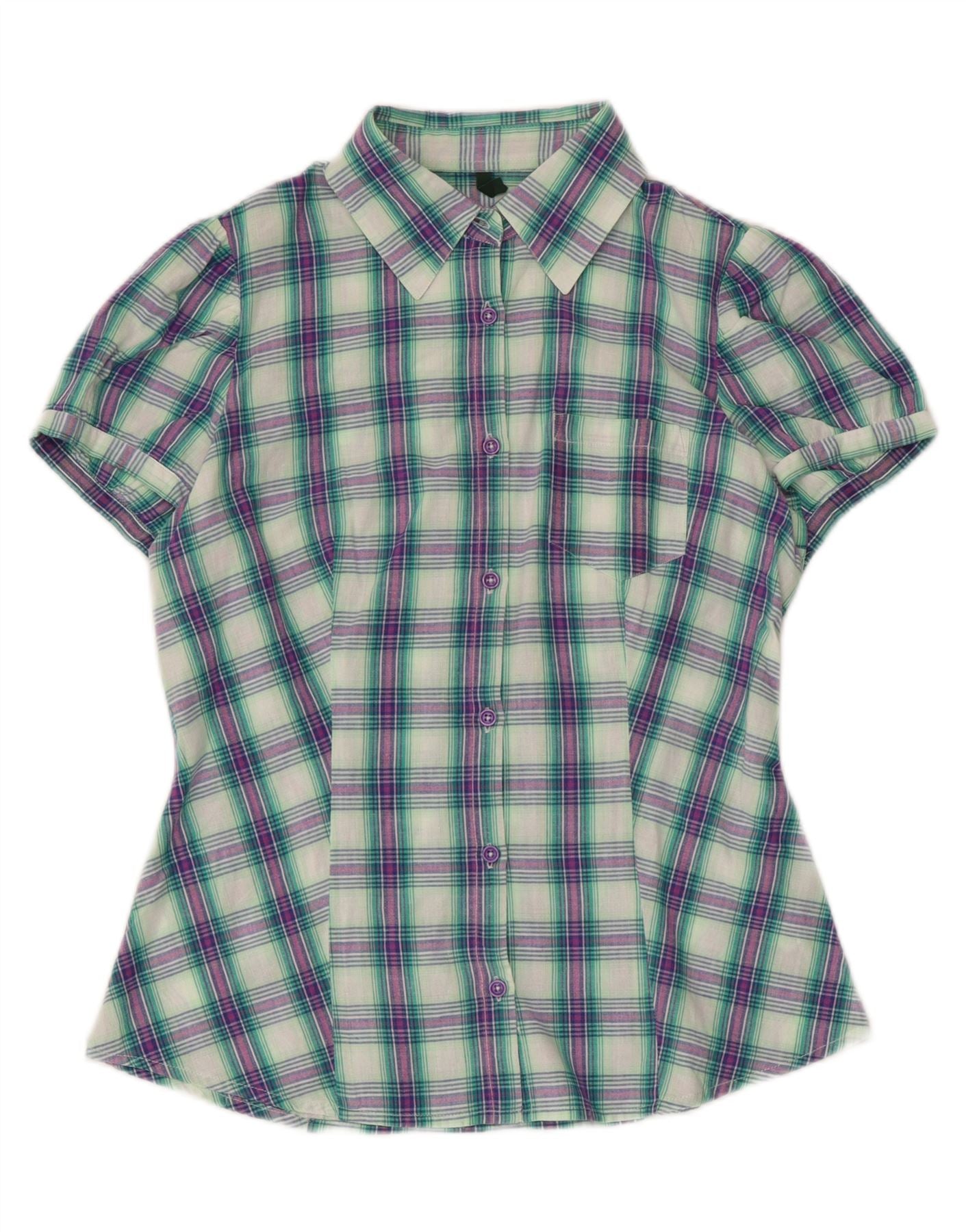 Camisa feminina de manga curta BENETTON UK 14 algodão xadrez médio multicolorido