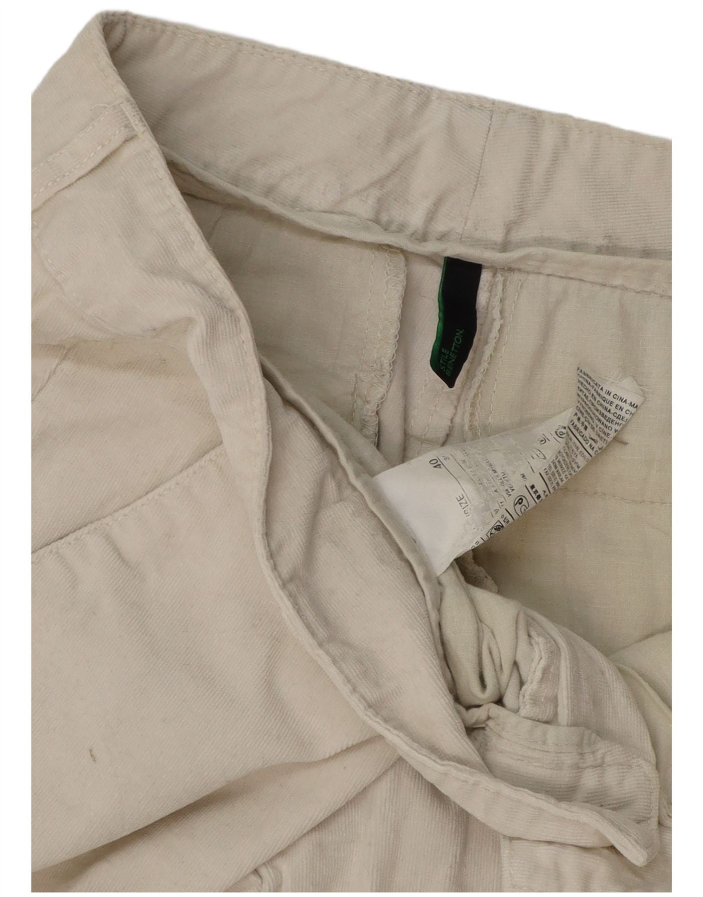 BENETTON Womens Slim Corduroy Trousers IT 40 Small W30 L26 Off White