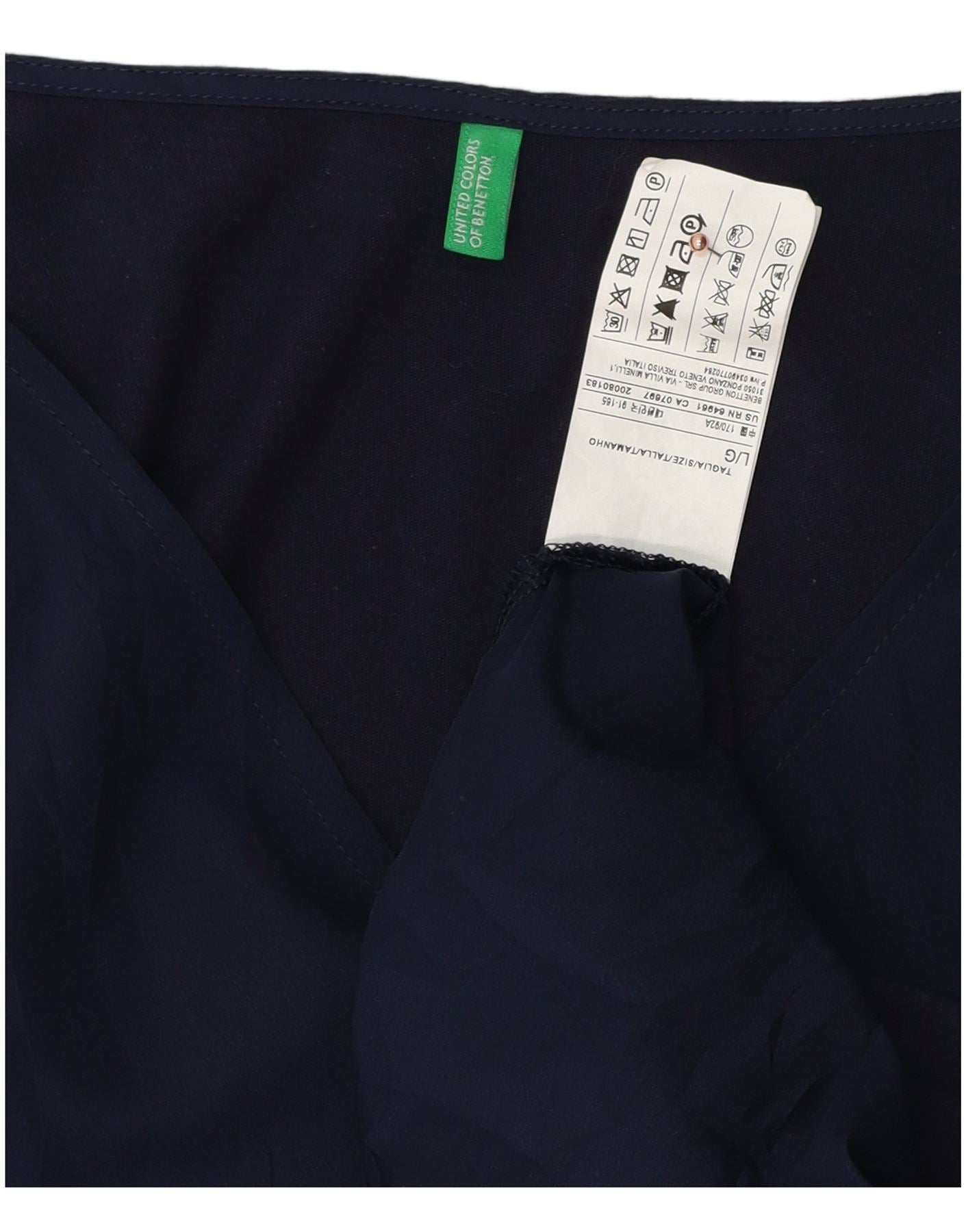 Top feminino BENETTON manga 3/4 Reino Unido 16 grande algodão azul marinho