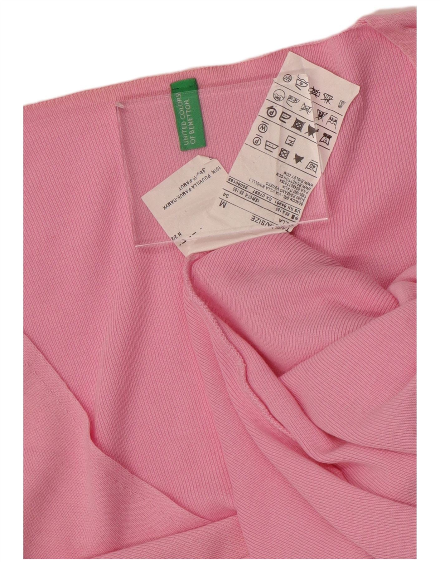 Suéter feminino BENETTON com decote em V Reino Unido 12 algodão rosa médio