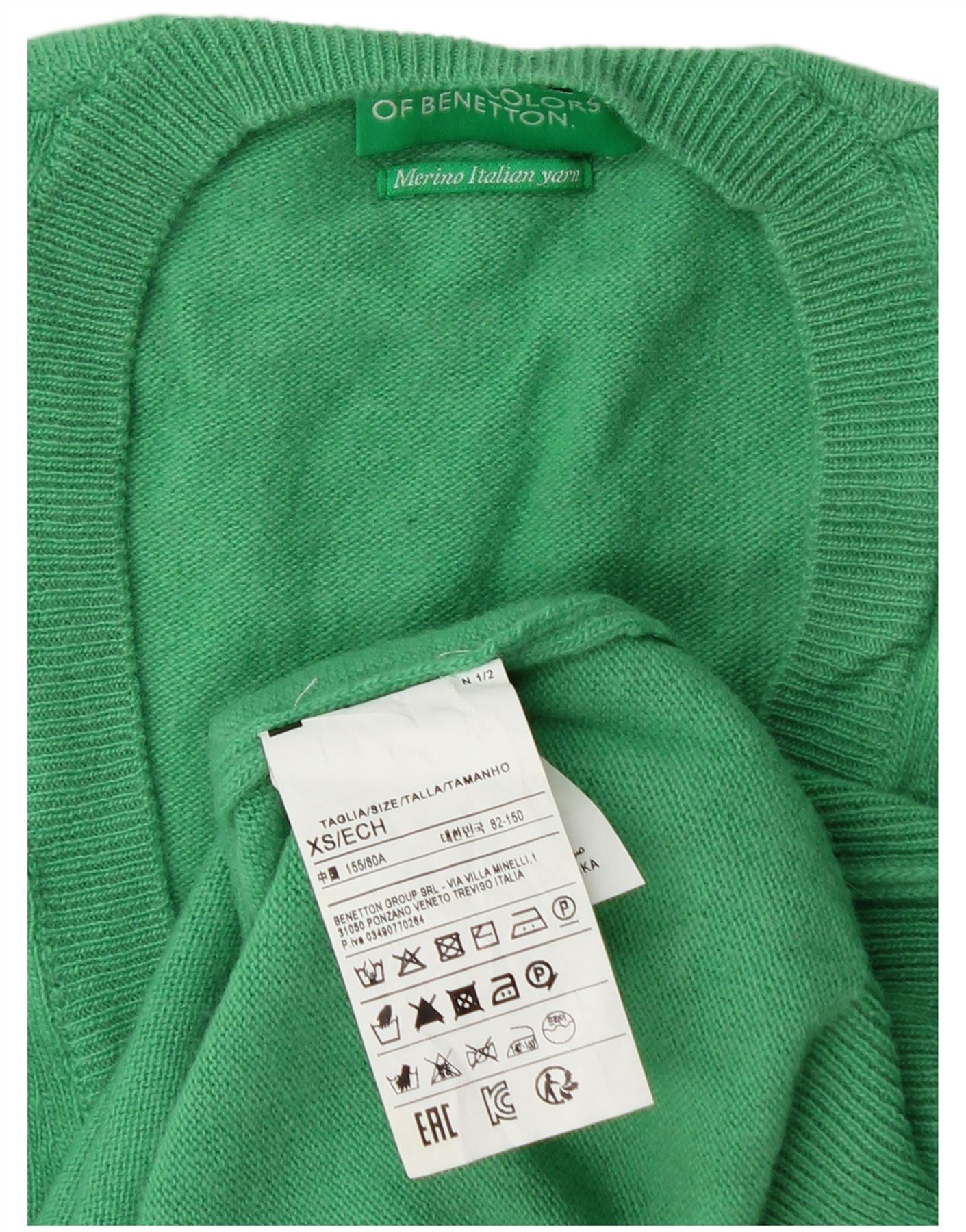 Home > Roupas Vintage Benetton > mulheres > Suéter feminino BENETTON com decote em V Reino Unido 6 XS lã virgem verde
