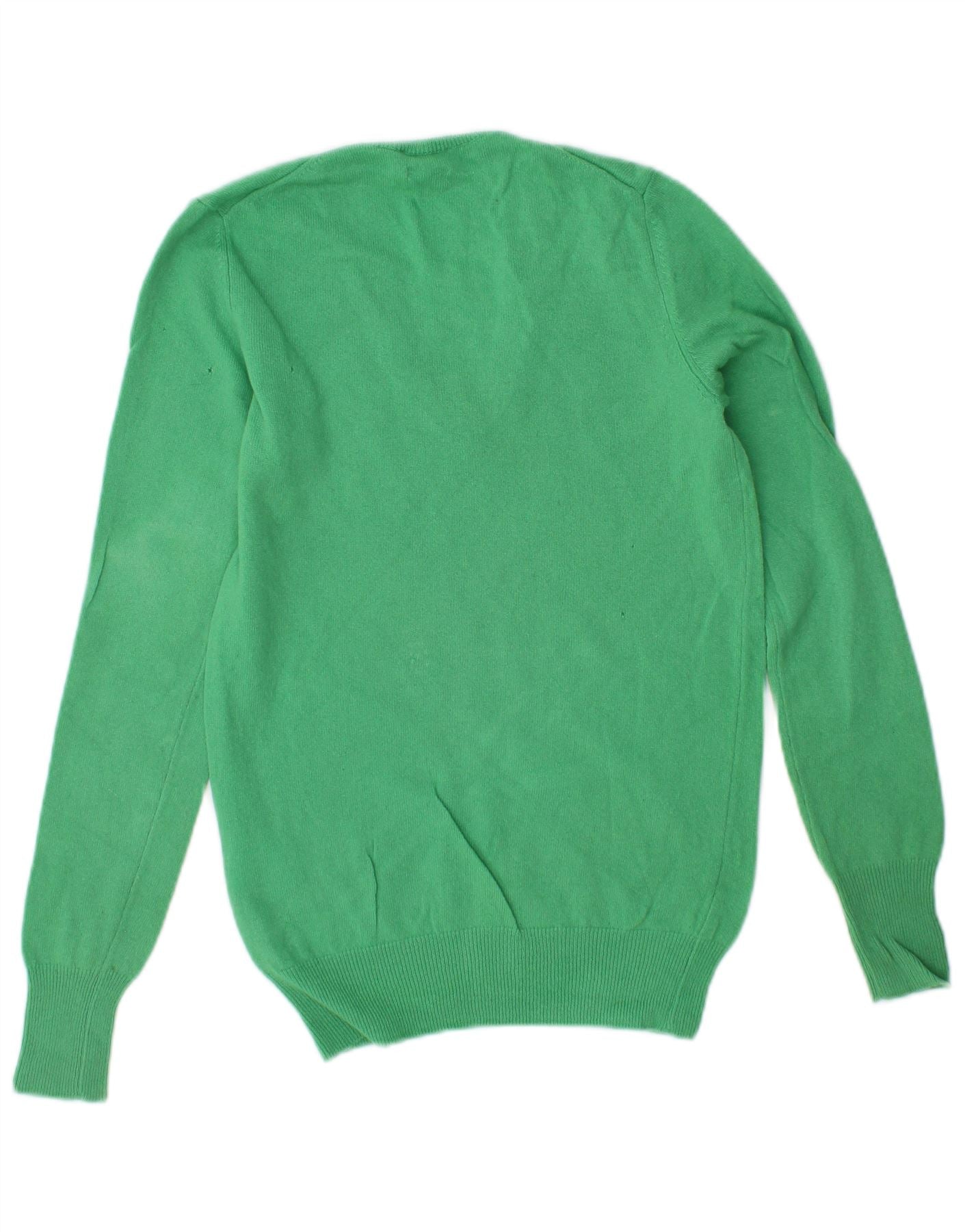 Suéter feminino BENETTON com decote em V Reino Unido 6 XS lã virgem verde