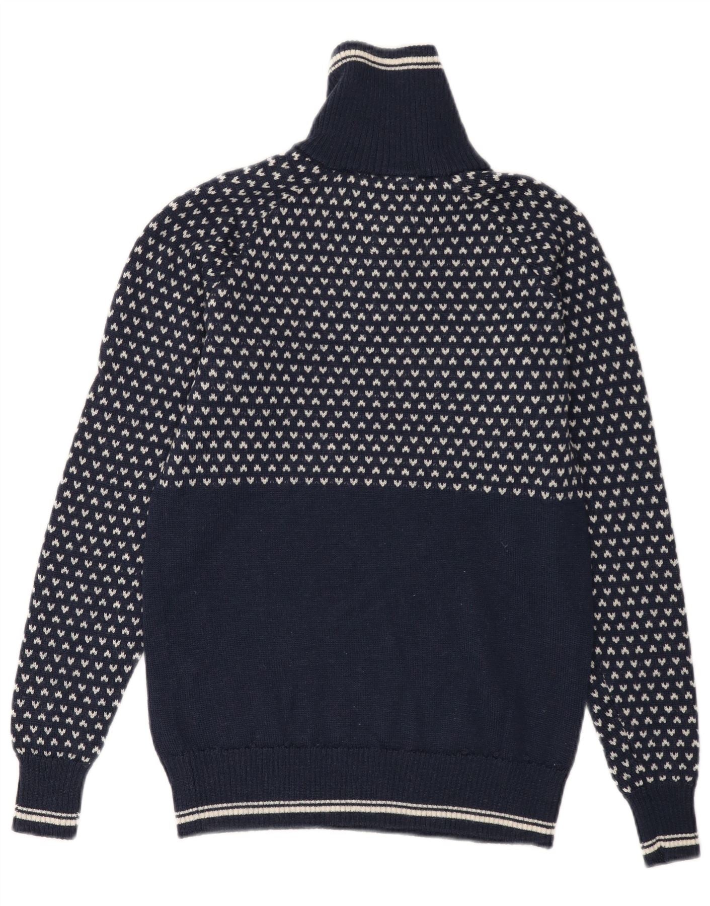 Suéter masculino BERGANS com zíper e gola XS de lã geométrica azul marinho