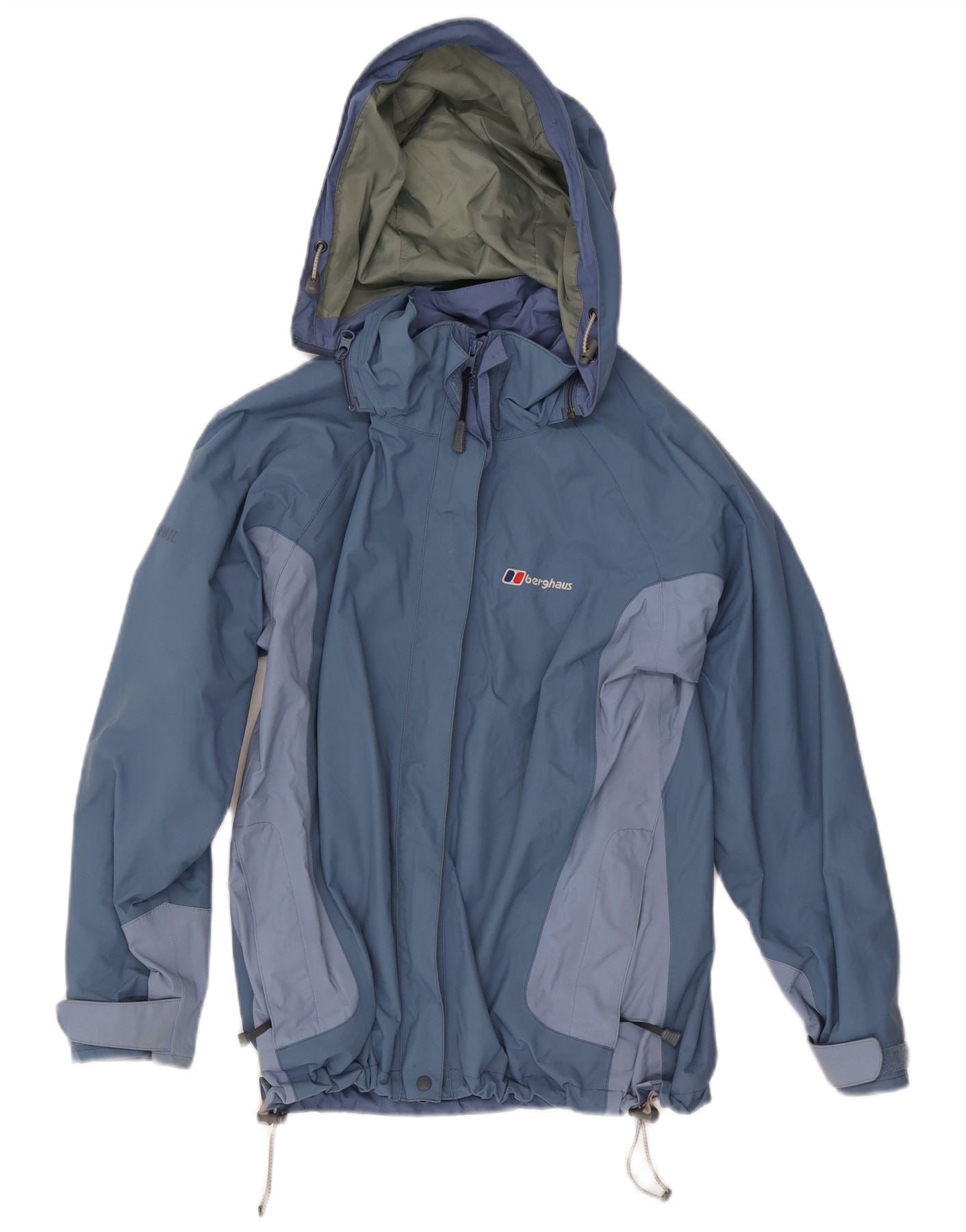 Jaqueta de chuva feminina com capuz BERGHAUS Reino Unido 10 pequeno bloco colorido azul de nylon