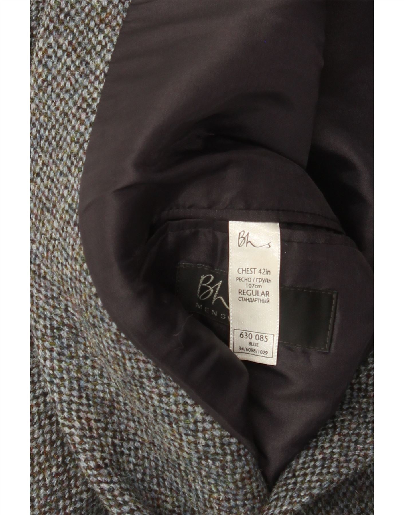 - Descrição da IA: Este paletó masculino de 2 peças da Bhs é feito de um rico tweed multicolorido. Seu padrão em espinha proporciona textura clássica. O decote com gola e as mangas compridas definem a sua estrutura. Um fecho de dois botões protege a frente. Este casaco de corte regular inclui bolsos práticos. Os botões tonais servem como um toque sutil e refinado. Oferece um estilo clássico e atemporal.