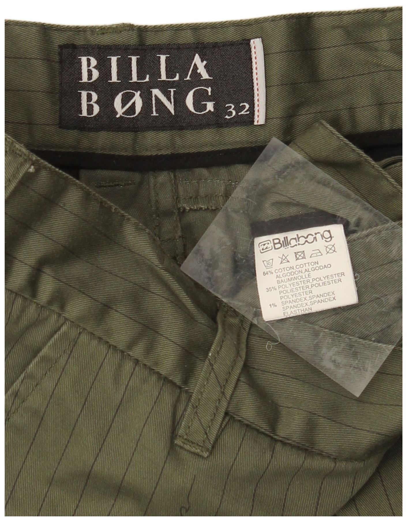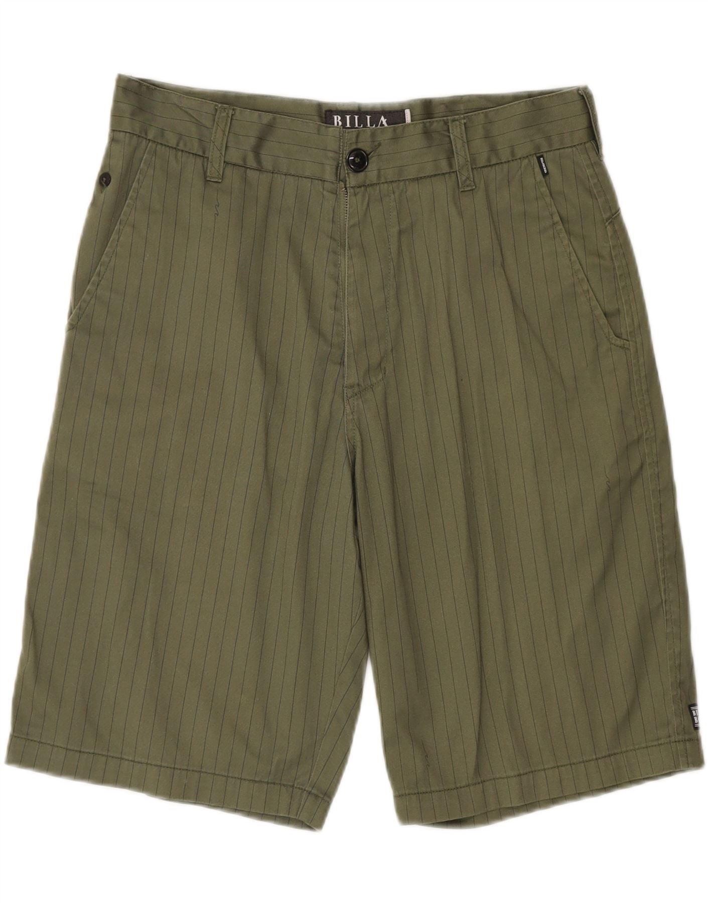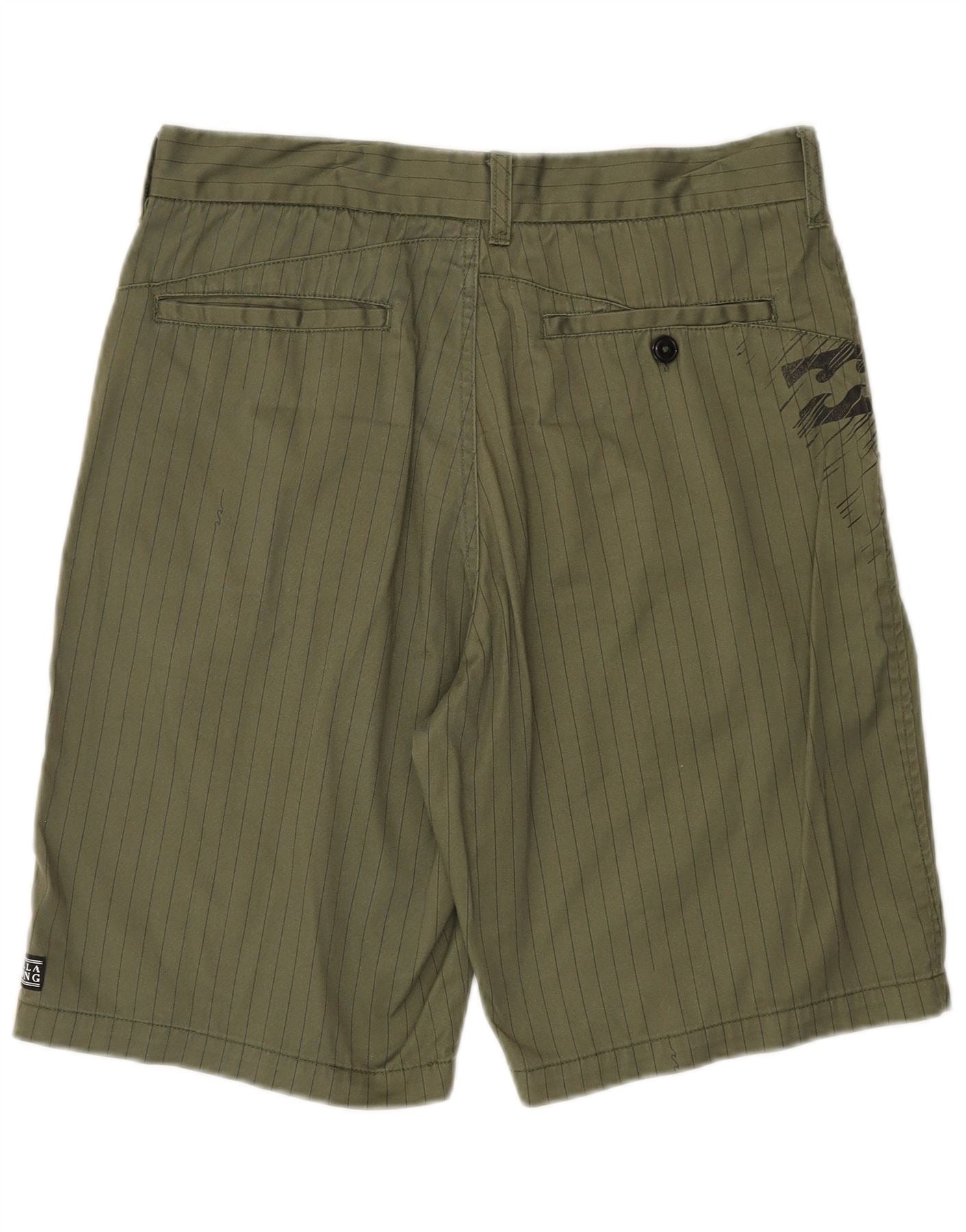 BILLABONG Mens Graphic Chino Shorts W32 Algodão Listrado Verde Médio