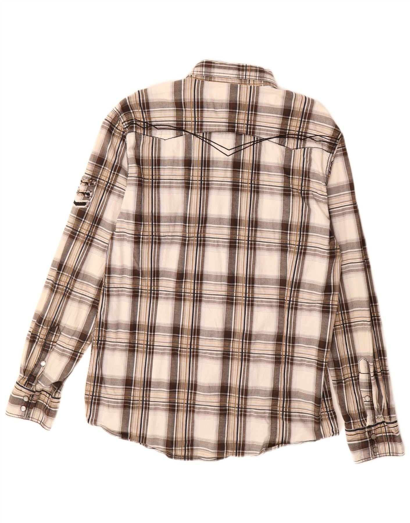 Camisa masculina BKE de ajuste atlético grande algodão xadrez marrom