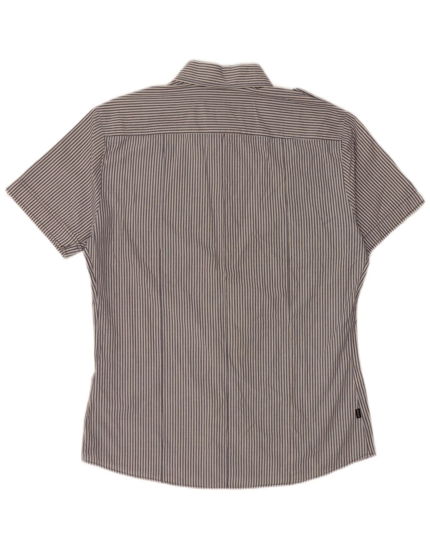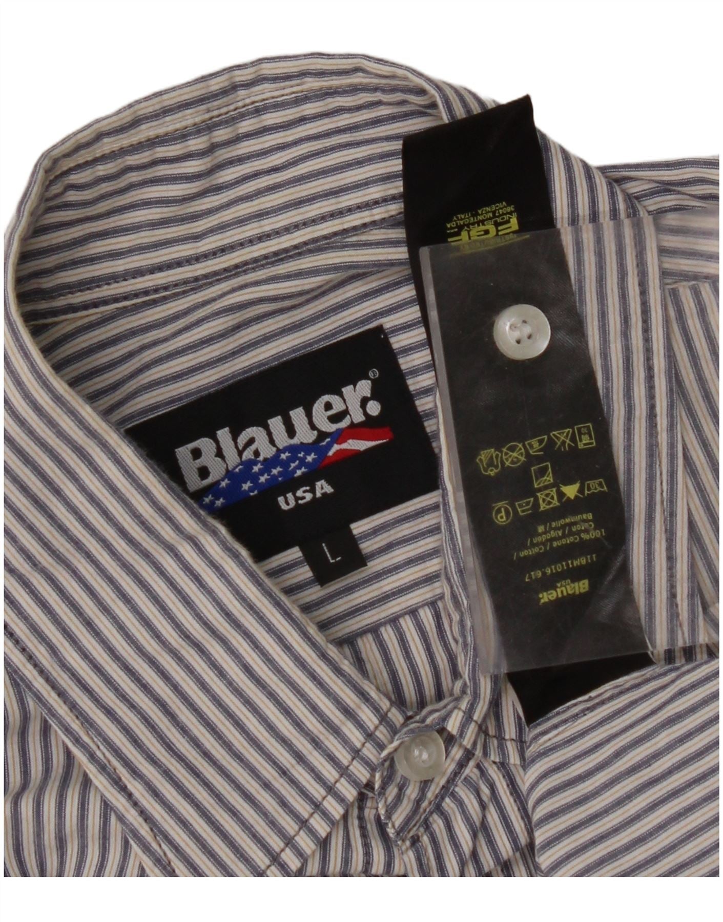 BLAUER Camisa militar masculina de manga curta grande algodão risca de giz azul