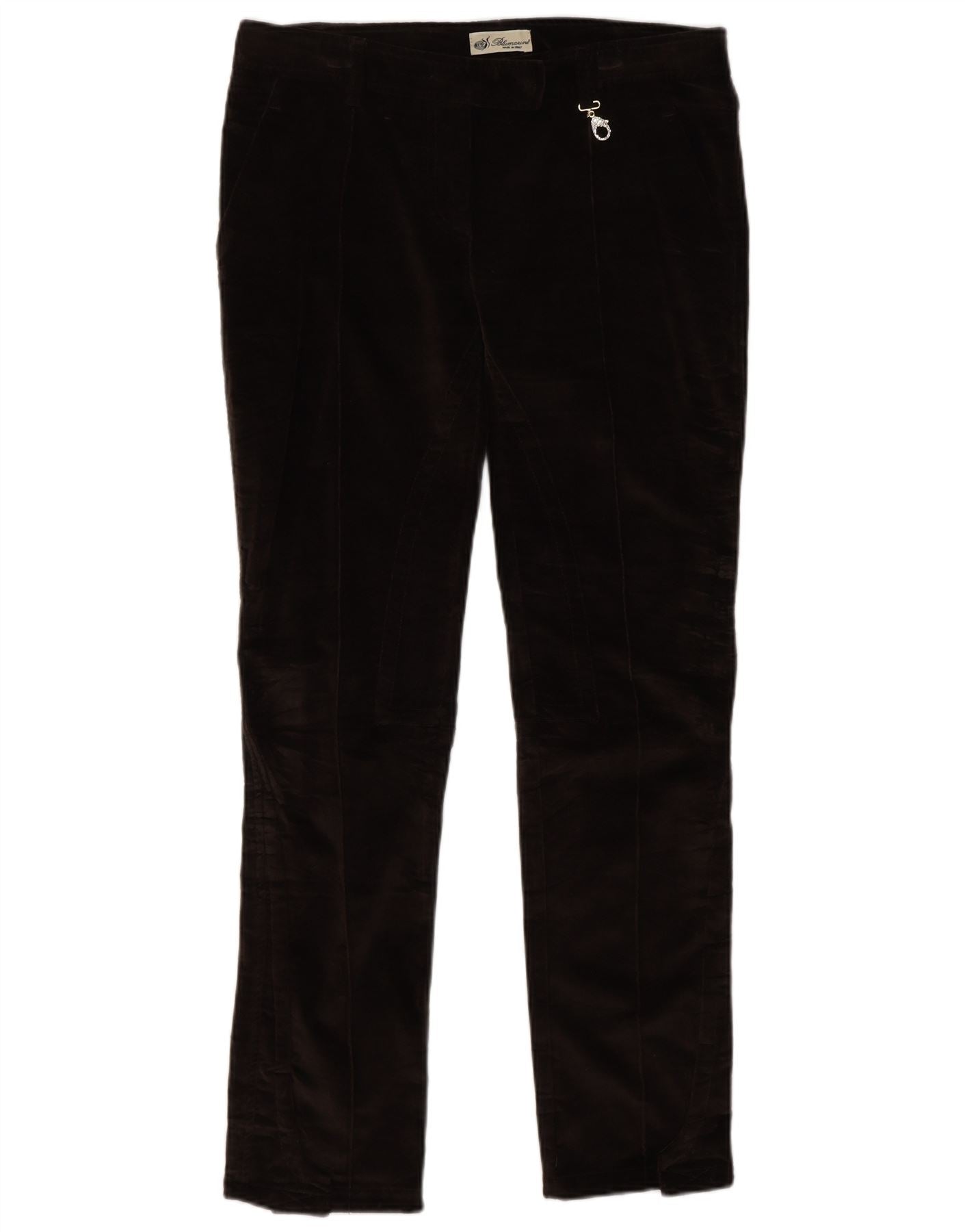 Calça casual feminina de veludo slim BLUMARINE IT 44 médio W32 L30 marrom