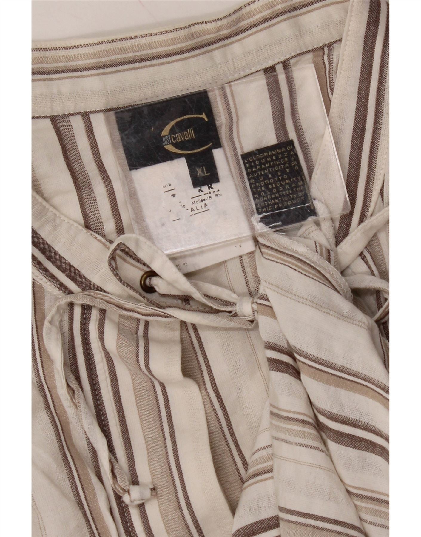 Blusa feminina de manga comprida JUST CAVALLI UK 18 XL listrado branco