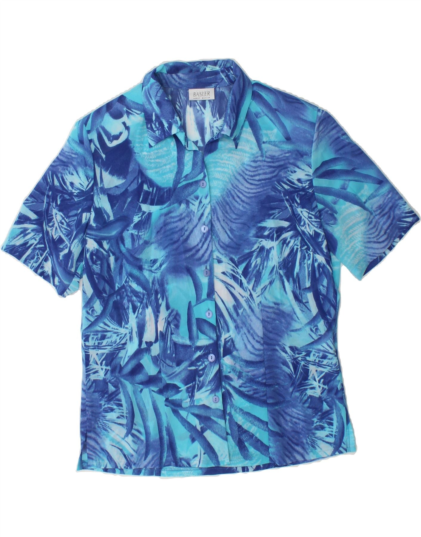 Blusa feminina de manga curta com padrão abstrato BASLER Reino Unido 12 azul médio