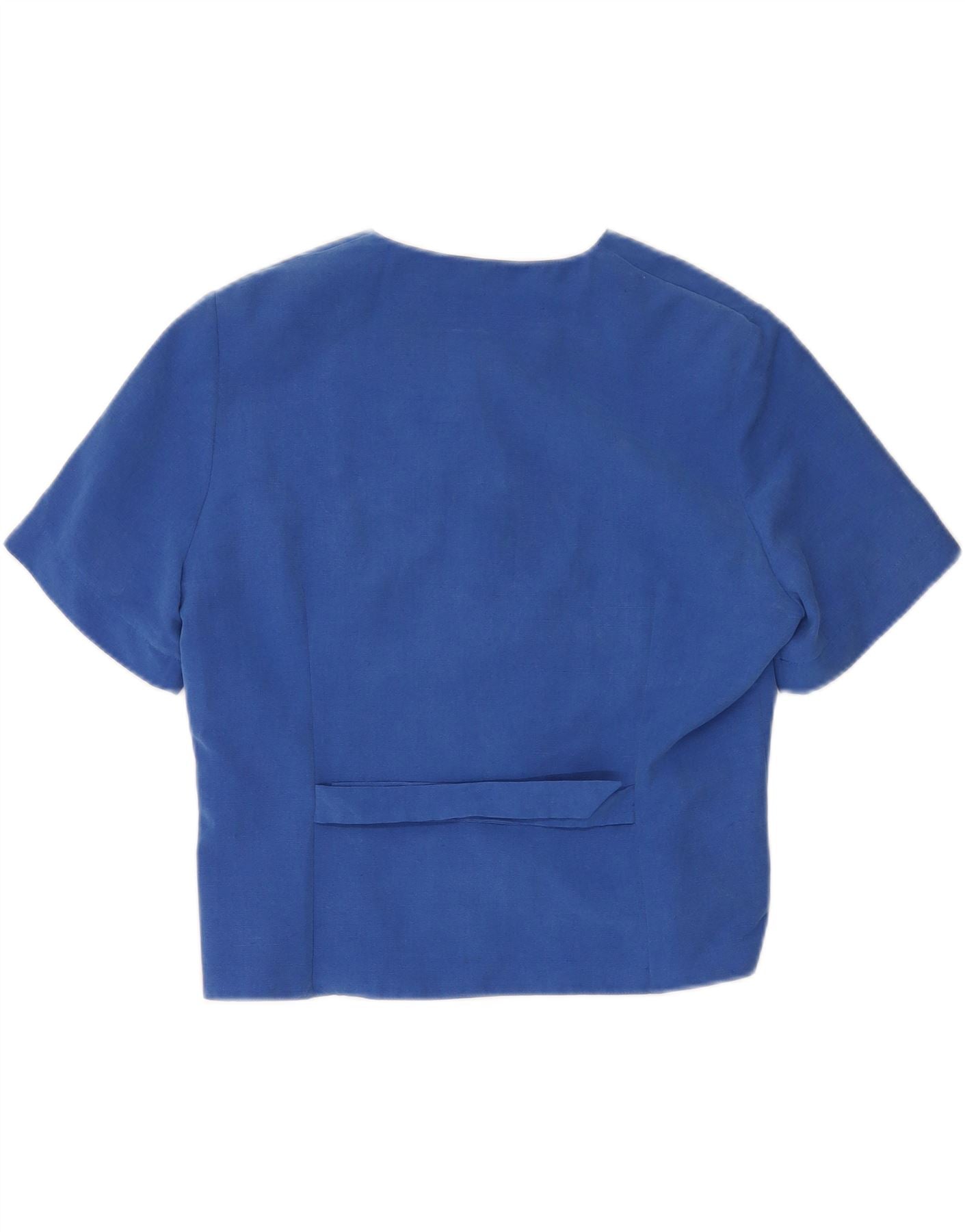 Blusa feminina de manga curta JOHN BENTLEY Reino Unido 12 poliéster azul médio