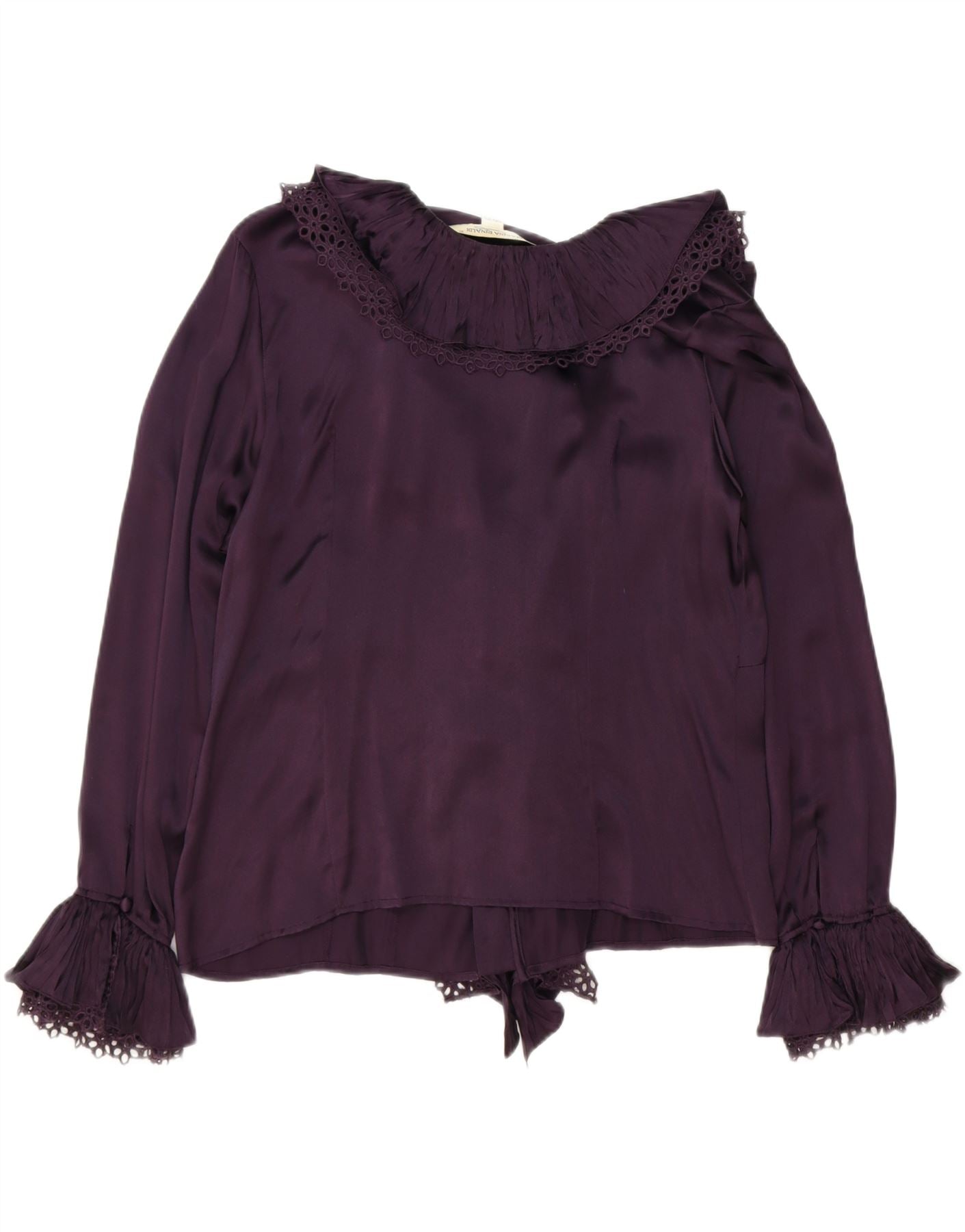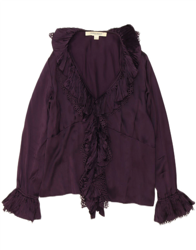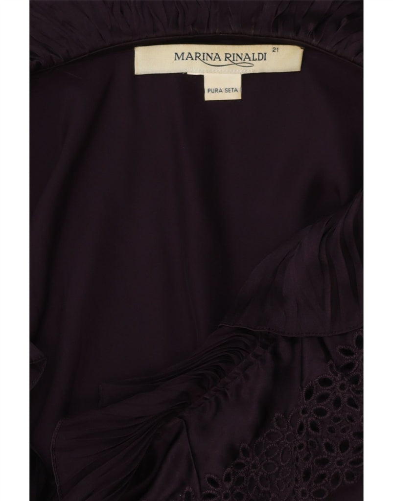 Blusa feminina MARINA RINALDI com babados na frente, tamanho 21, seda roxa média