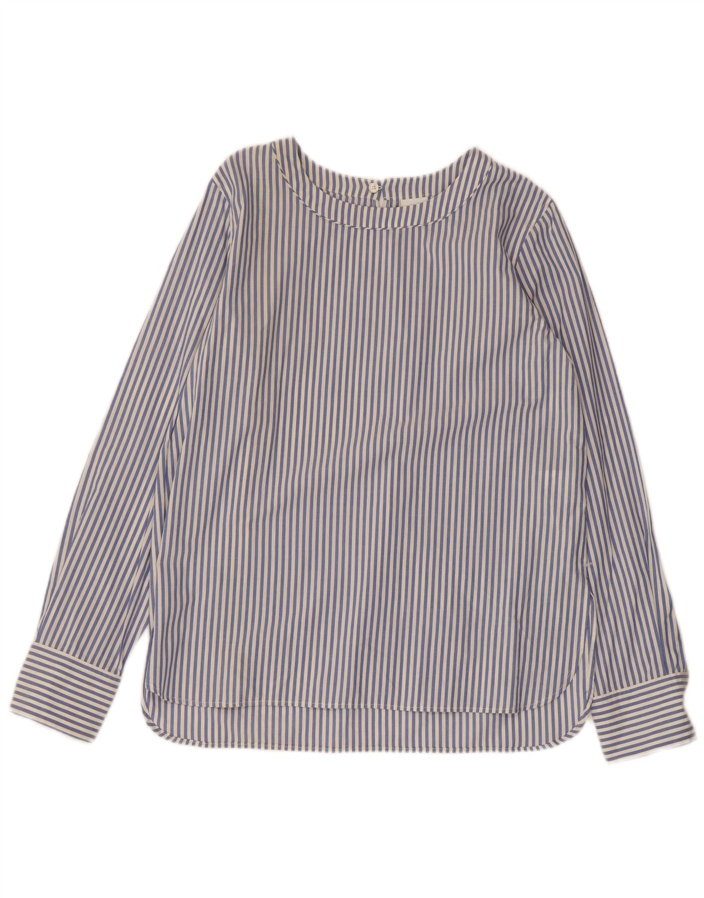Blusa feminina oversized MAX MARA Reino Unido 10 algodão listrado azul pequeno