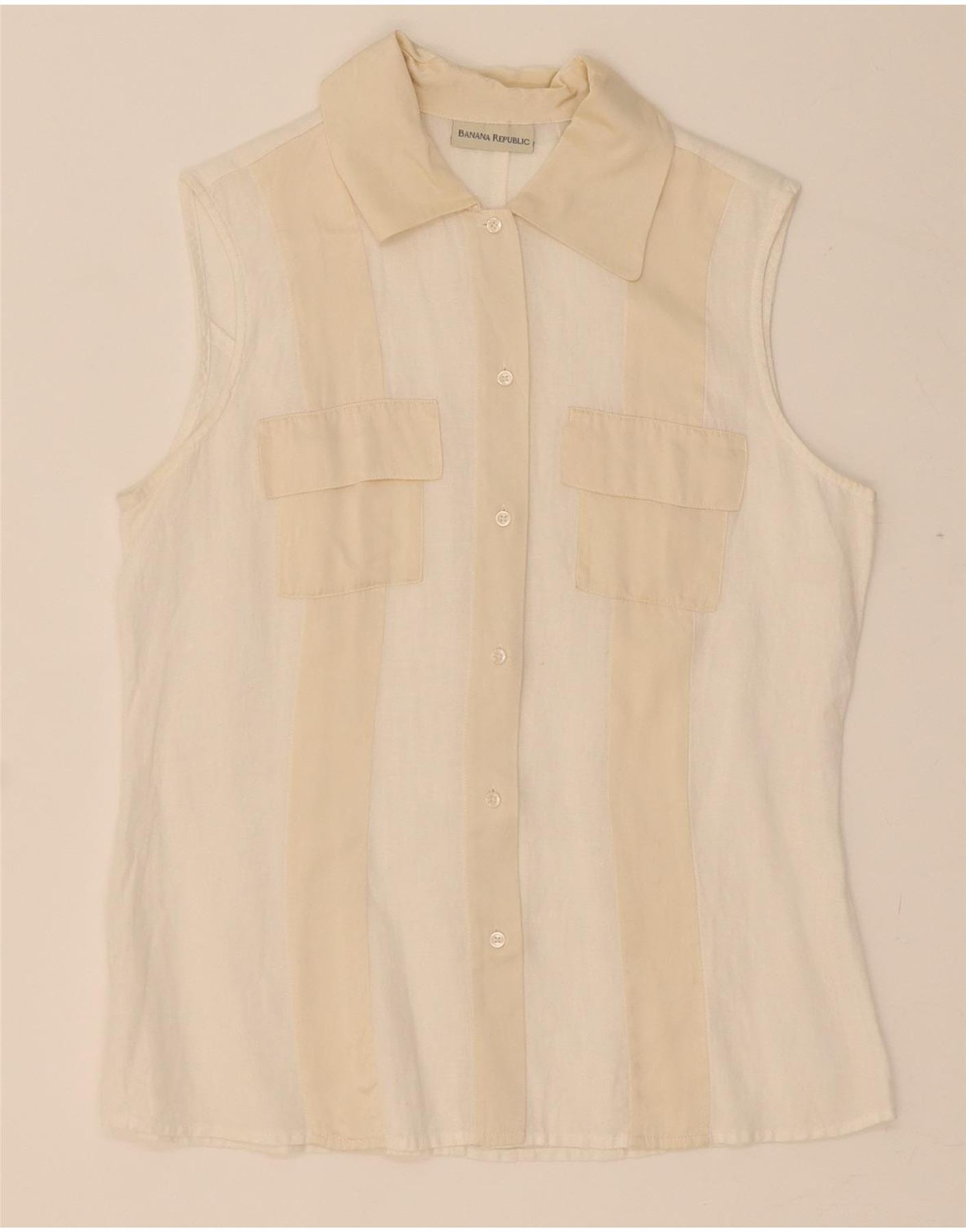 Blusa feminina sem mangas BANANA REPUBLIC UK 12 listrada bege média