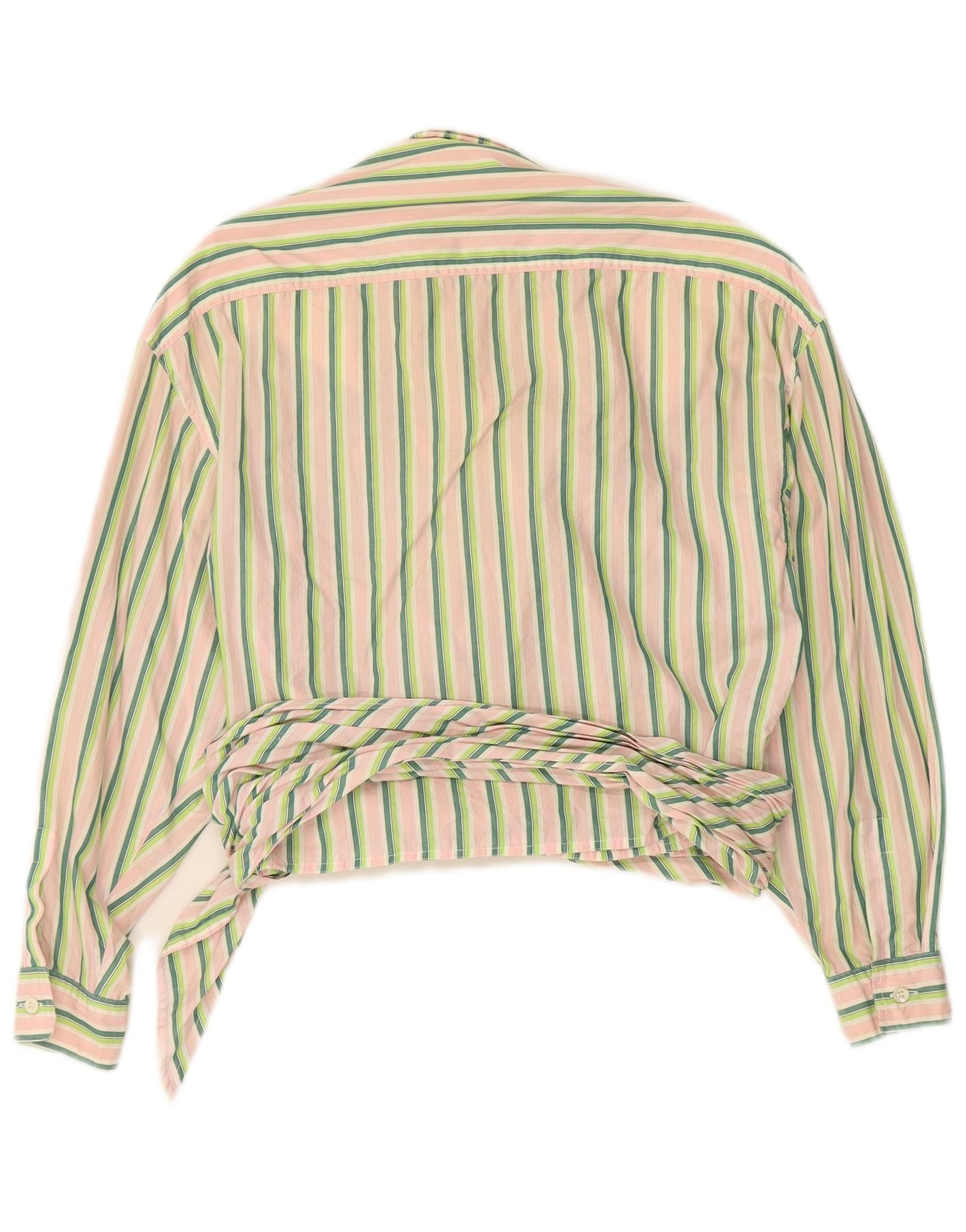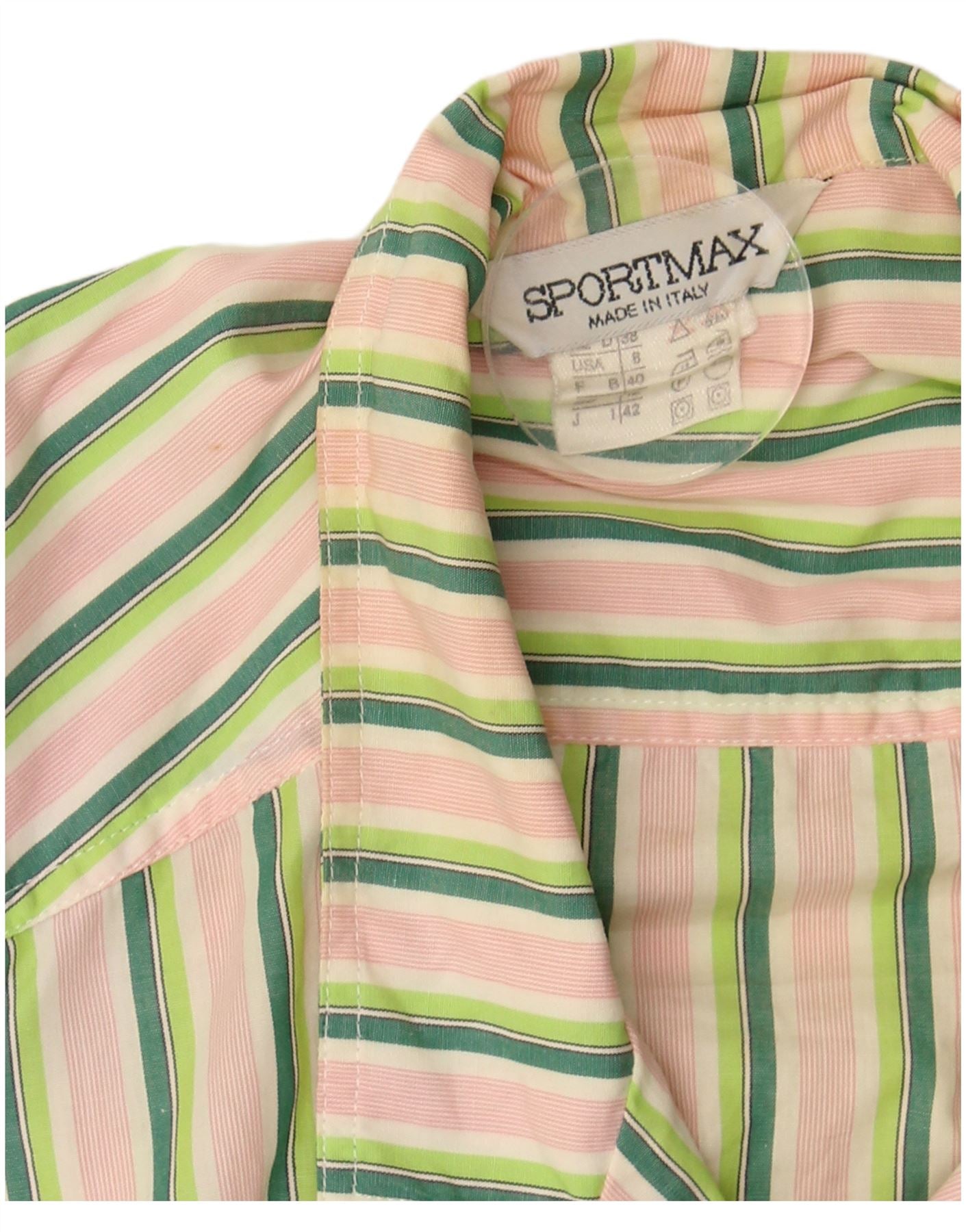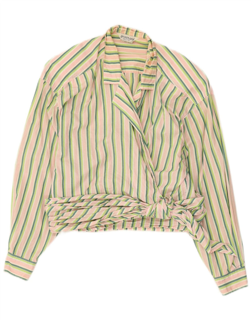 Blusa feminina SPORTMAX com corte envoltório Reino Unido 12 algodão listrado rosa médio