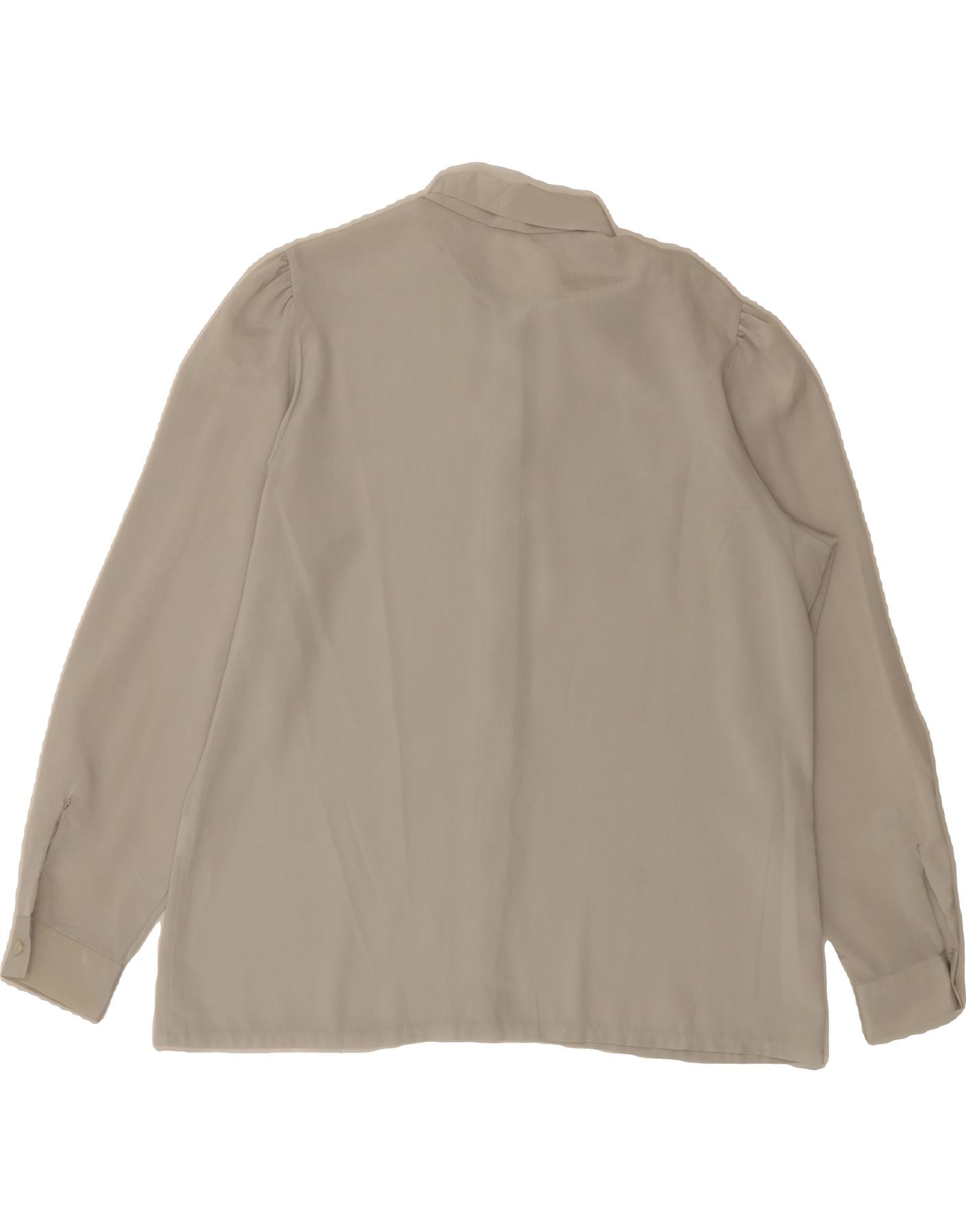 Blusa feminina VINTAGE com gravata frontal UE 38 poliéster cinza médio