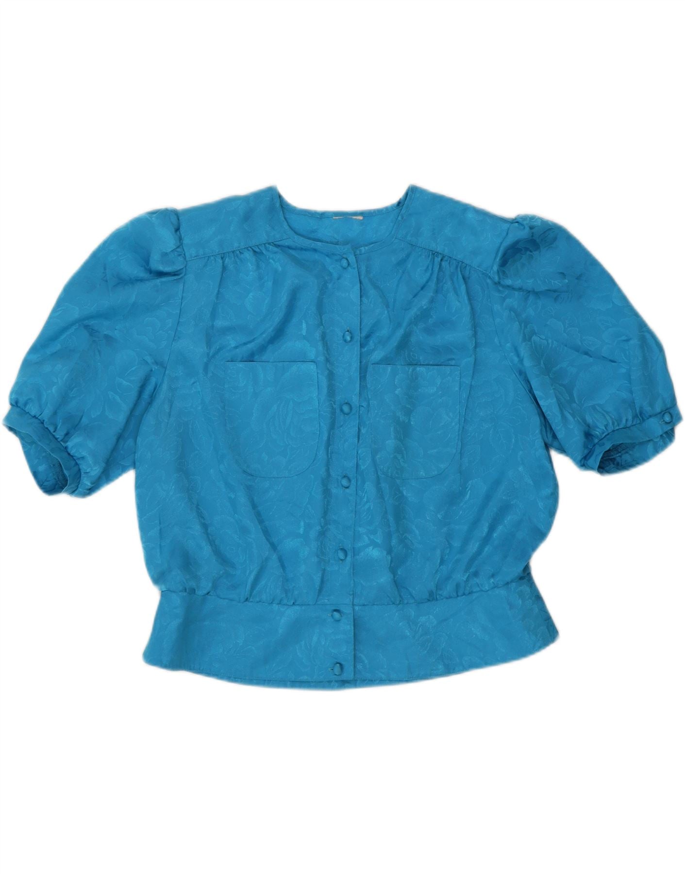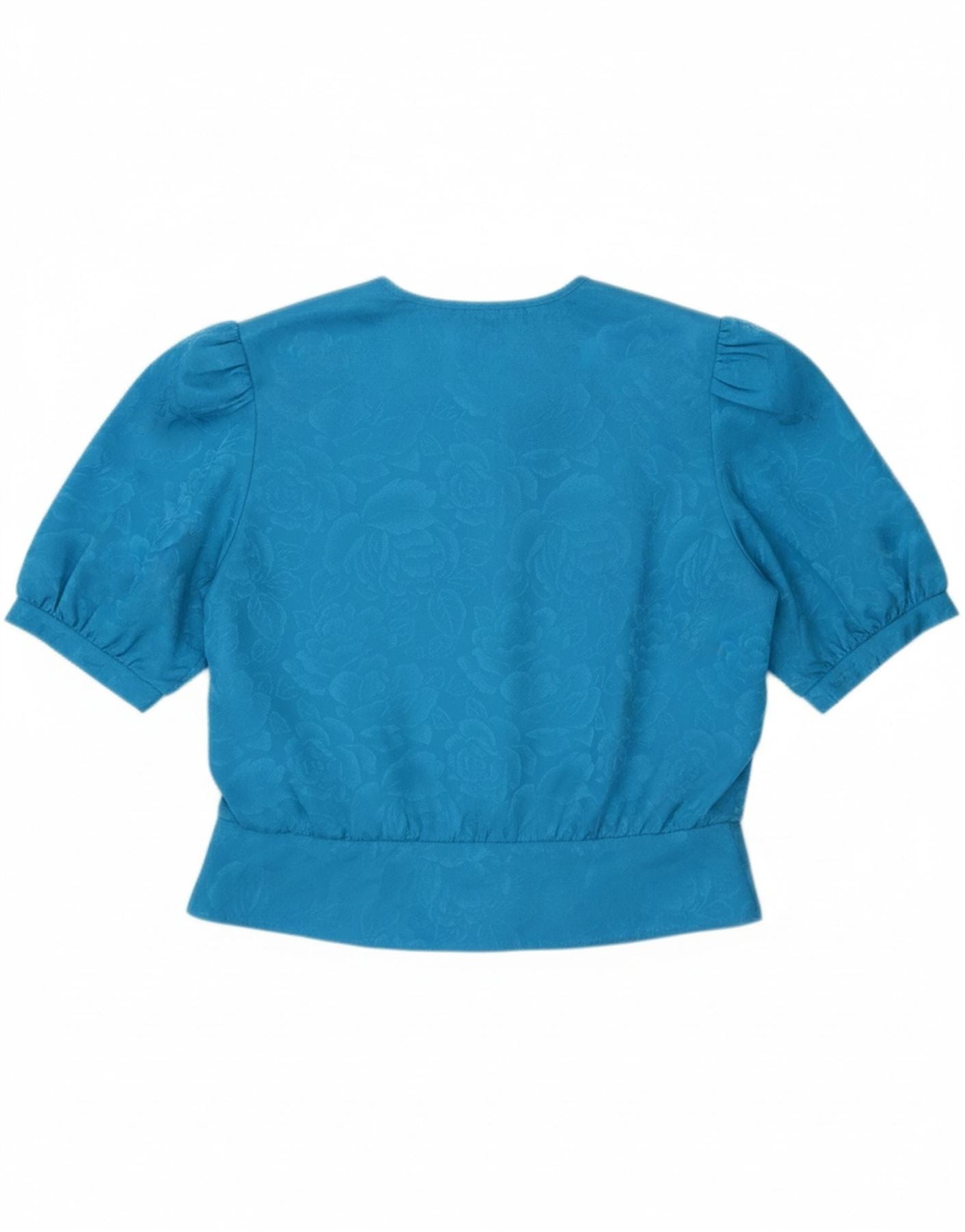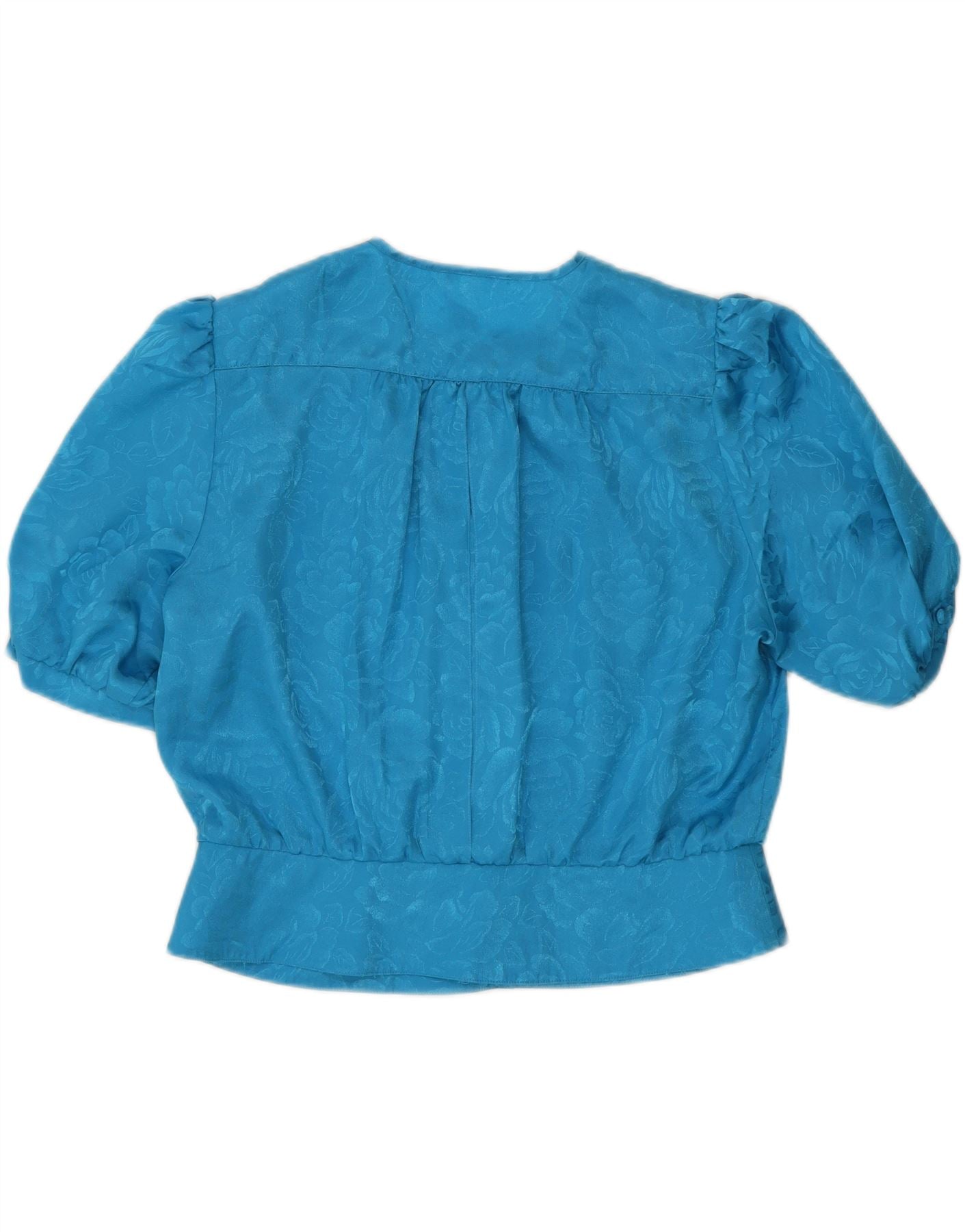 Blusa feminina VINTAGE manga curta UK 18 XL azul floral