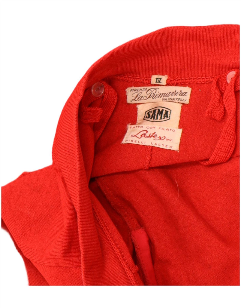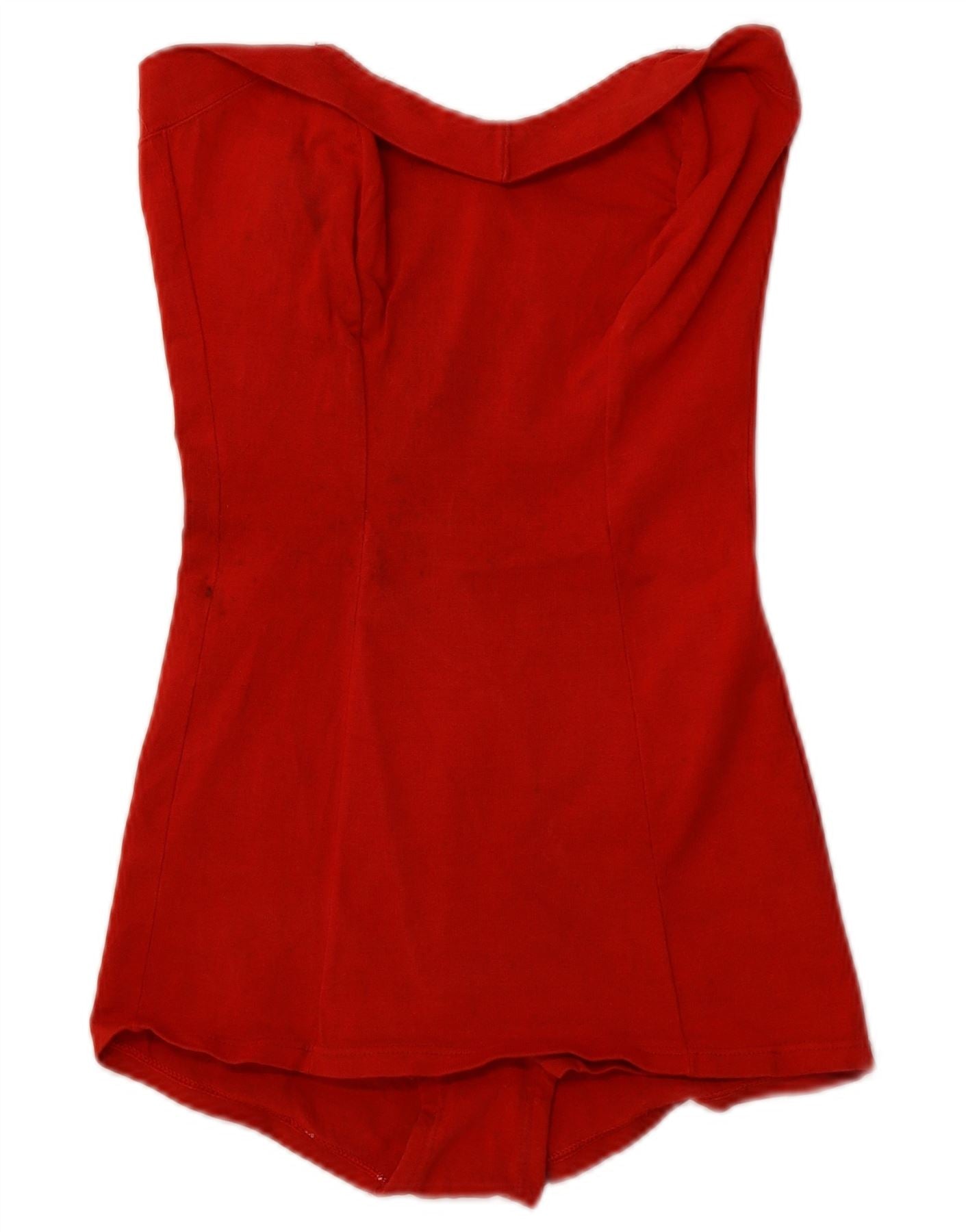 - Descrição da IA: Este traje de banho feminino vintage é confeccionado em malha de elastômero vermelho, com fio Lastex Pirelli Latex para elasticidade excepcional. O design sem alças oferece um ajuste elegante e fino. Não tem mangas, criando uma silhueta limpa. Um fechamento sutil de botão adiciona um toque retrô. Esta peça combina conforto com uma estética clássica e aerodinâmica, perfeita para nadar.
