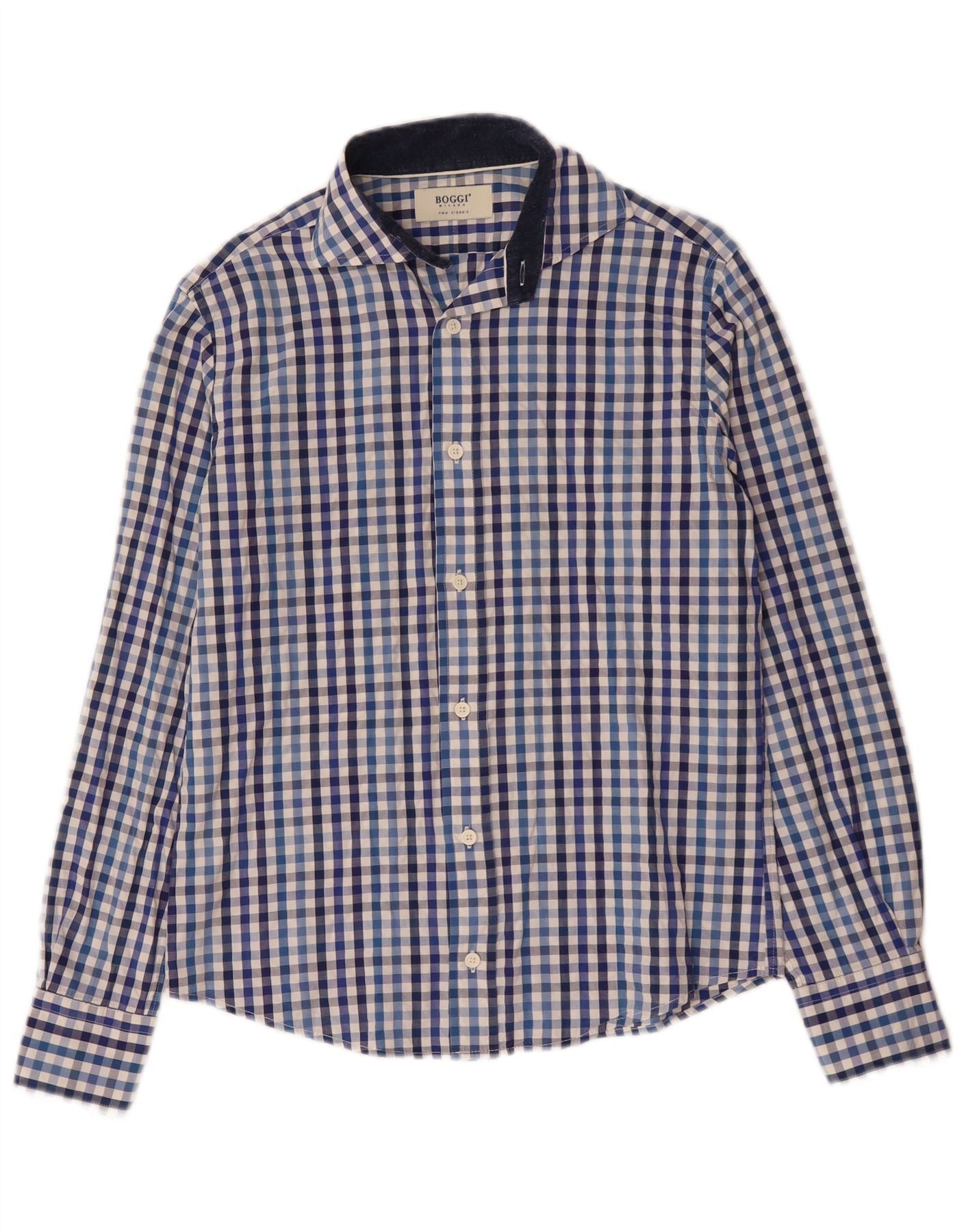 Camisa masculina Boggi Milano pequena azul algodão guingão