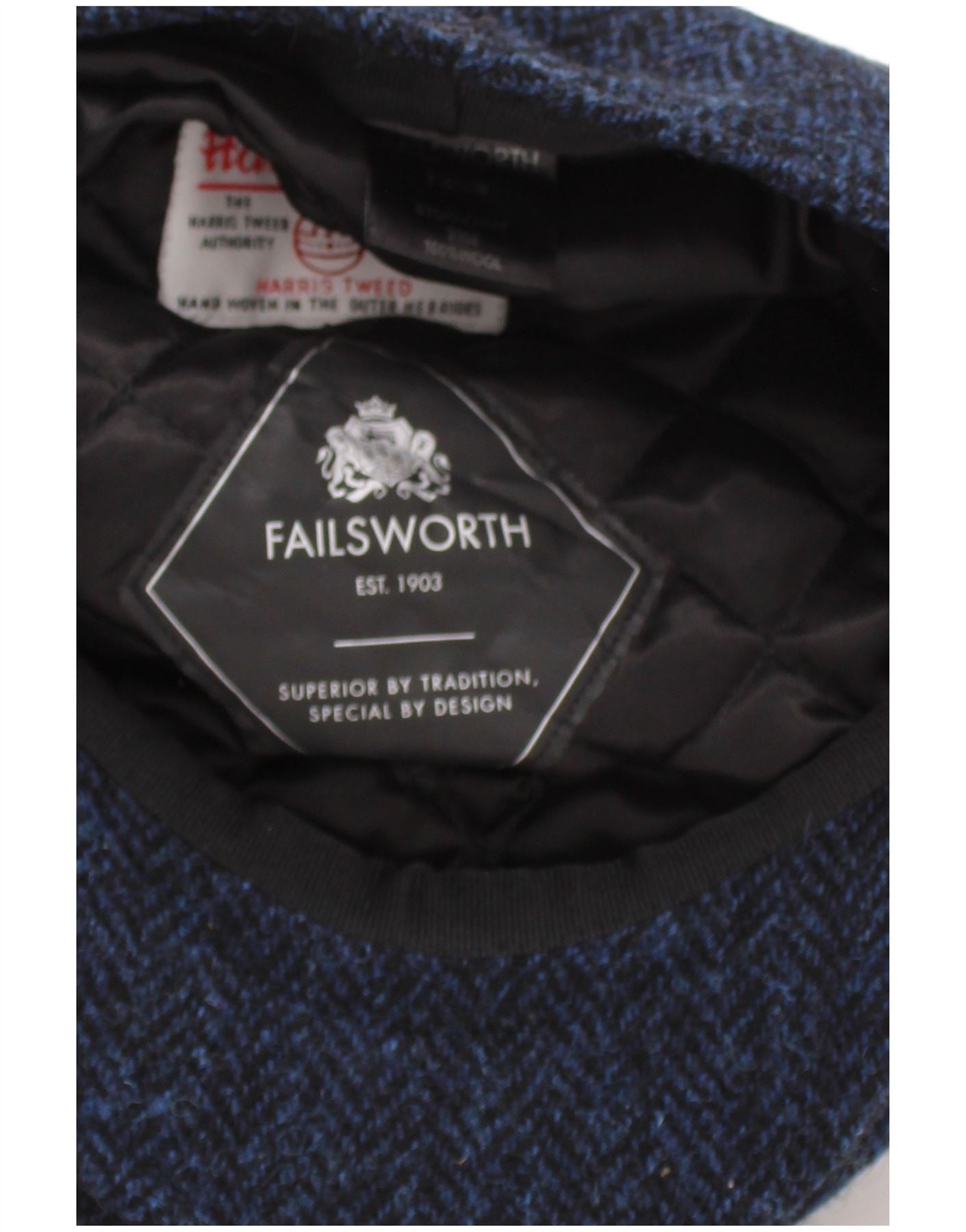 Boné plano geométrico masculino FAILSWORTH Harris Tweed médio azul marinho clássico