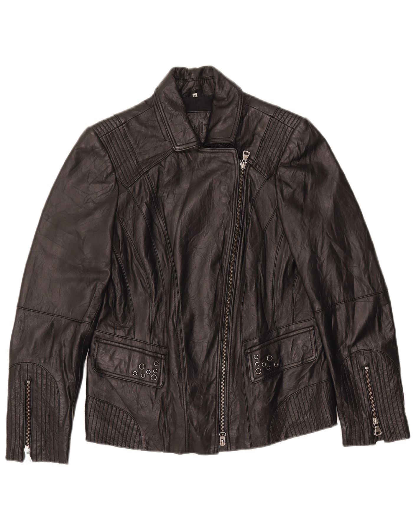 Jaqueta feminina de couro BONITA para motociclista EU 38 pele de cordeiro preta média
