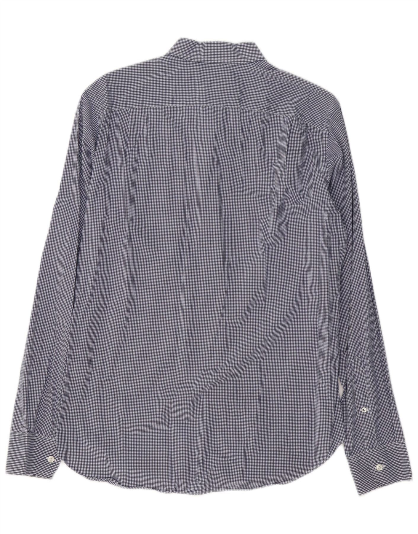 Camisa masculina slim fit BONOBOS de algodão guingão azul marinho médio