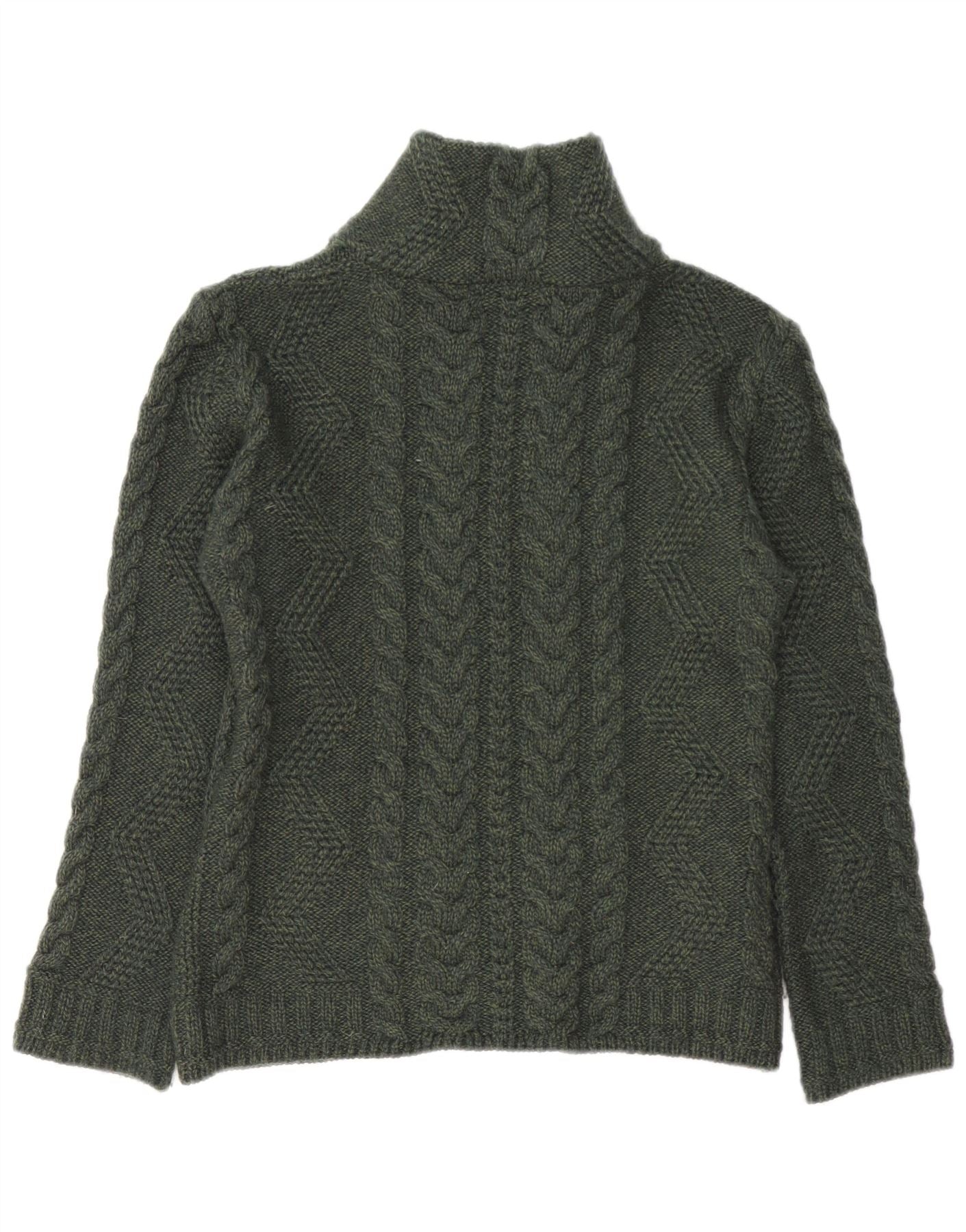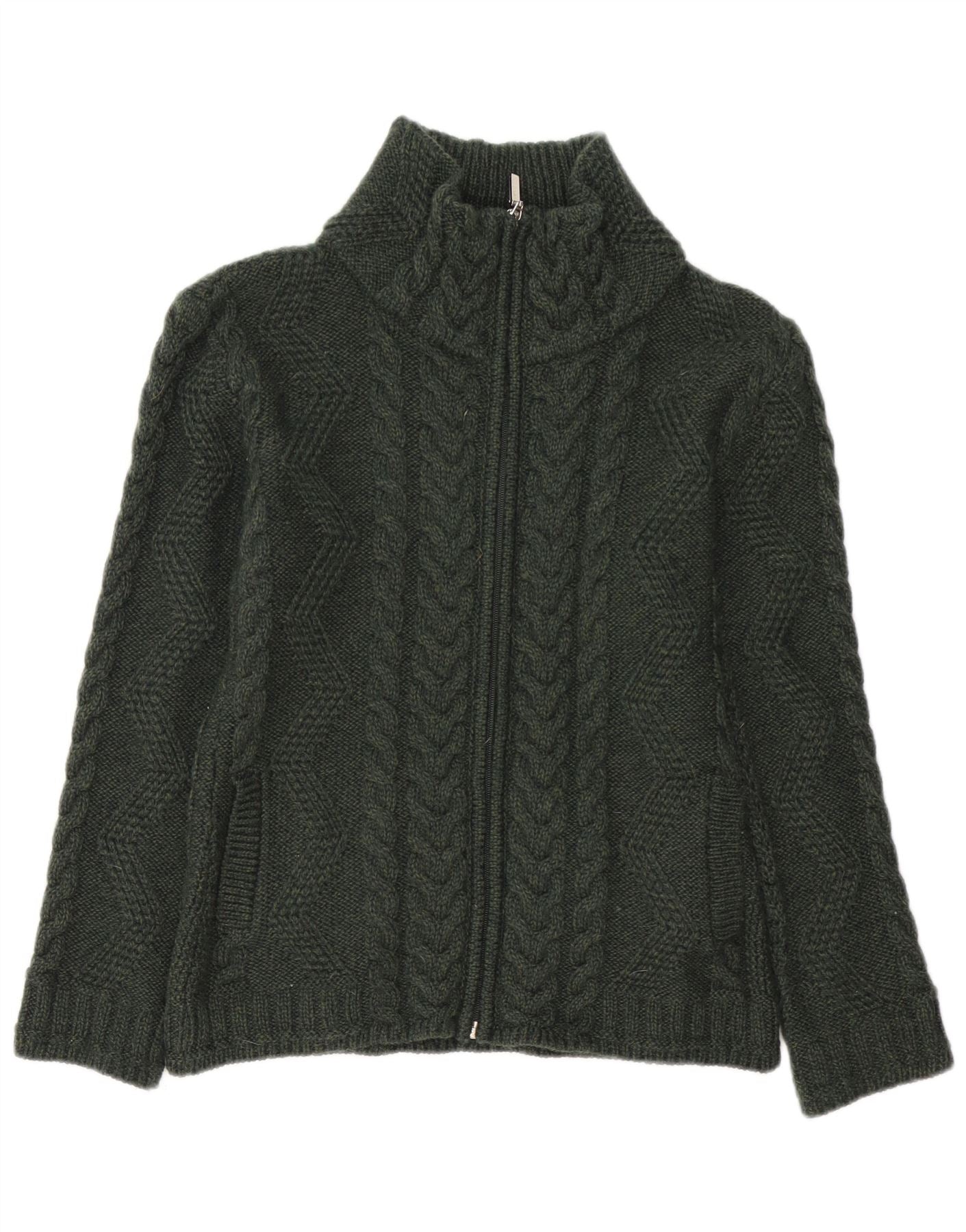 Suéter cardigã feminino BOSTON IRISH Reino Unido 10 lã merino verde pequena