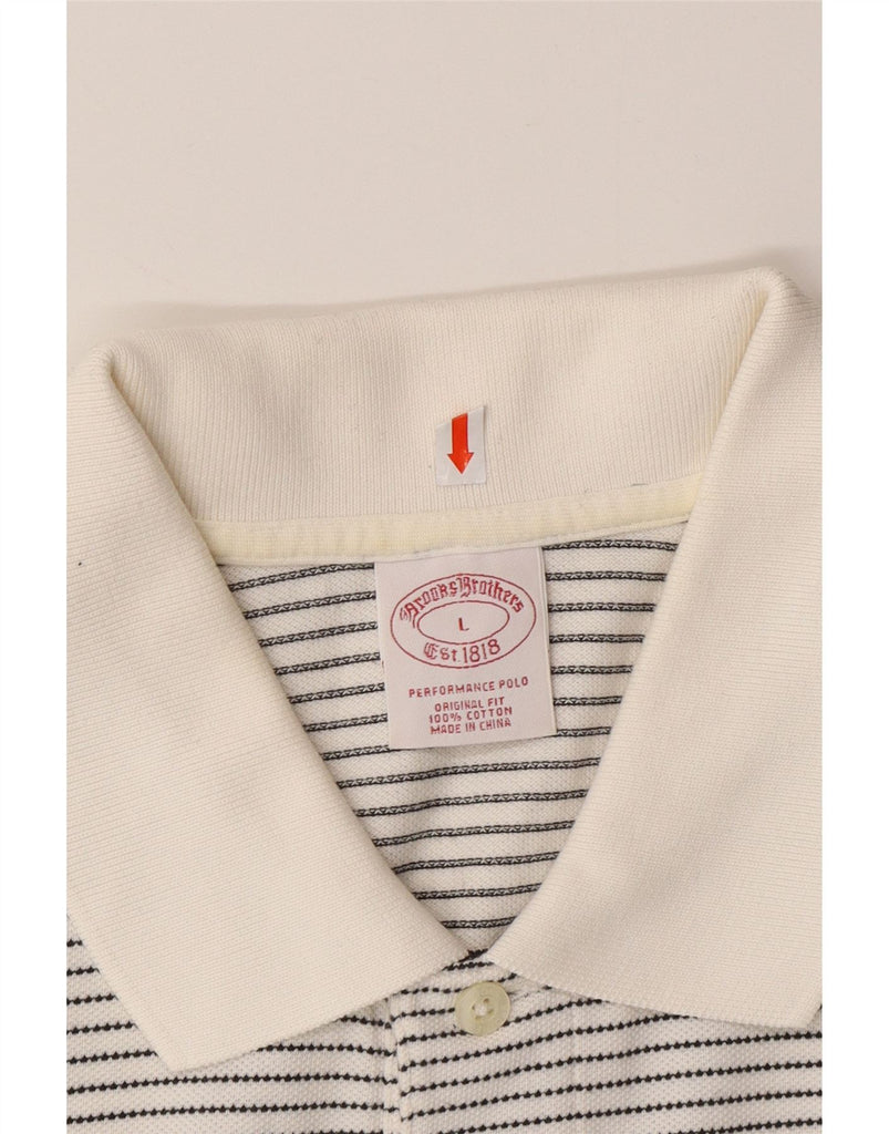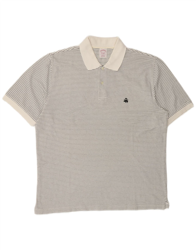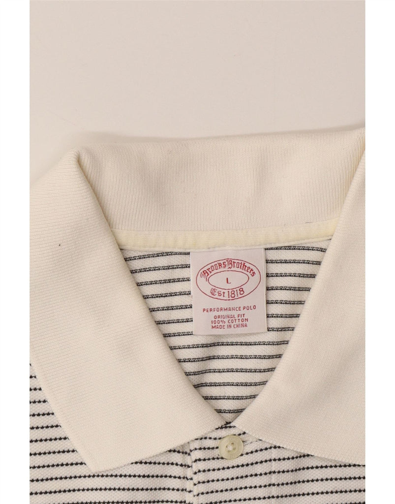 BROOKS BROTHERS Camisa polo masculina original de ajuste grande algodão listrado branco