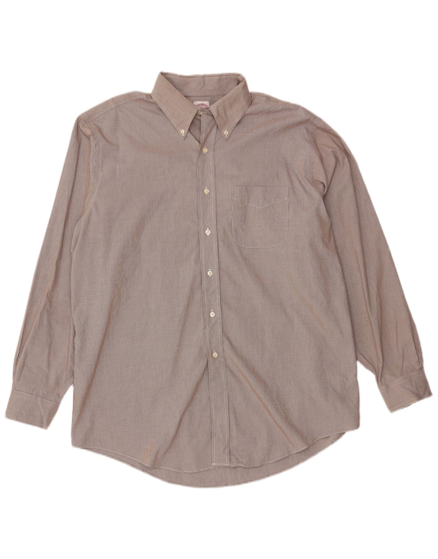 Camisa masculina BROOKS BROTHERS tamanho 16 1/2 grande marrom houndstooth