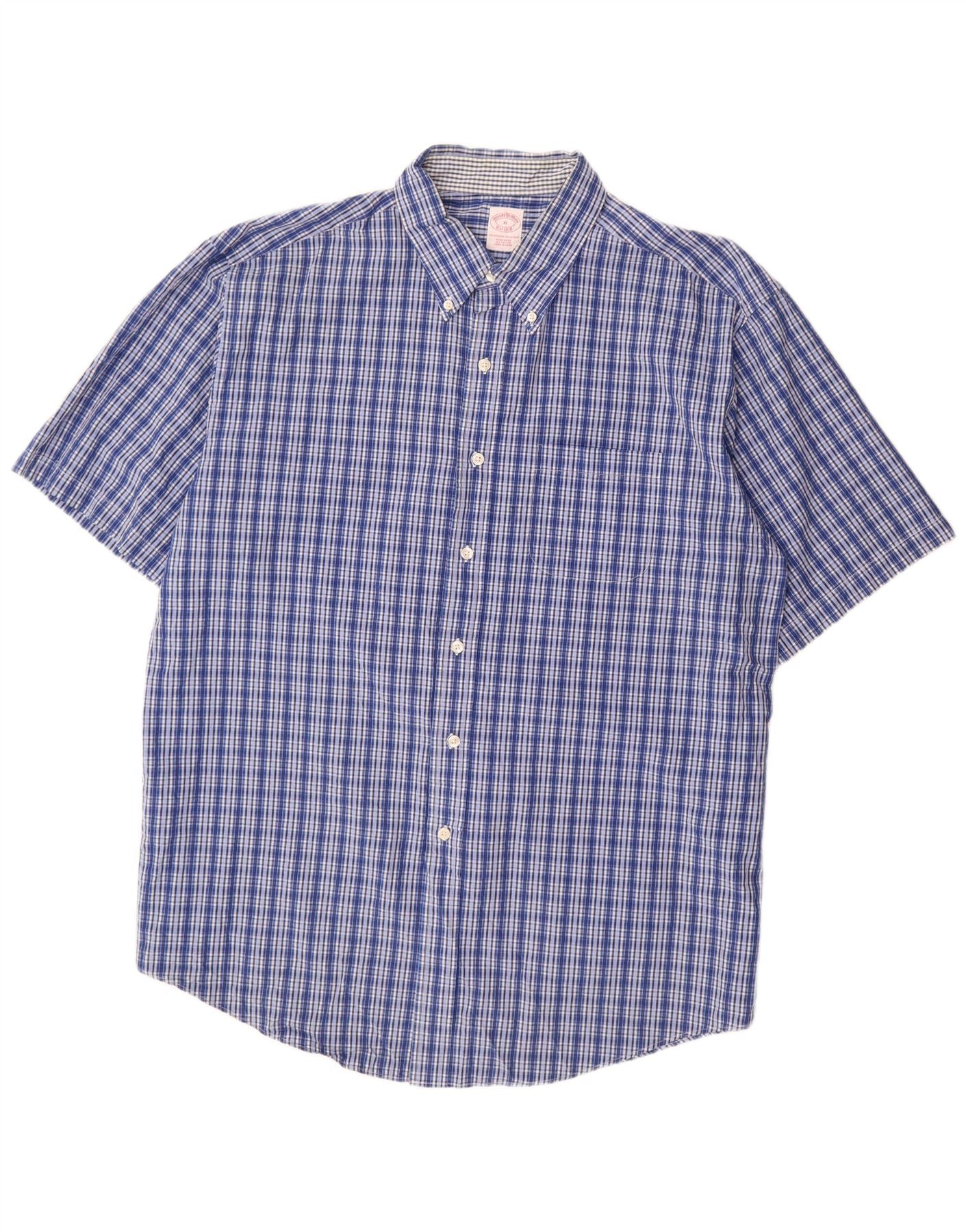Camisa masculina BROOKS BROTHERS manga curta regular fit XL azul xadrez algodão