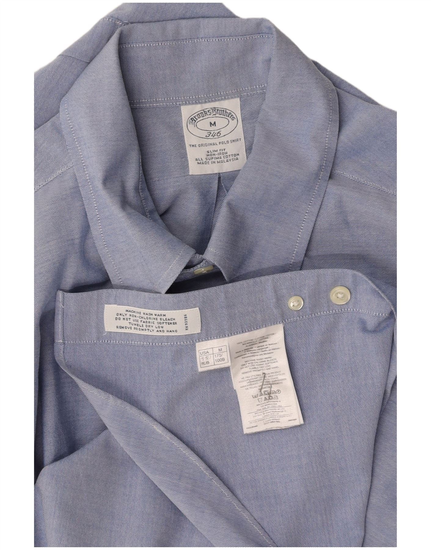 Camisa masculina slim fit BROOKS BROTHERS algodão azul médio