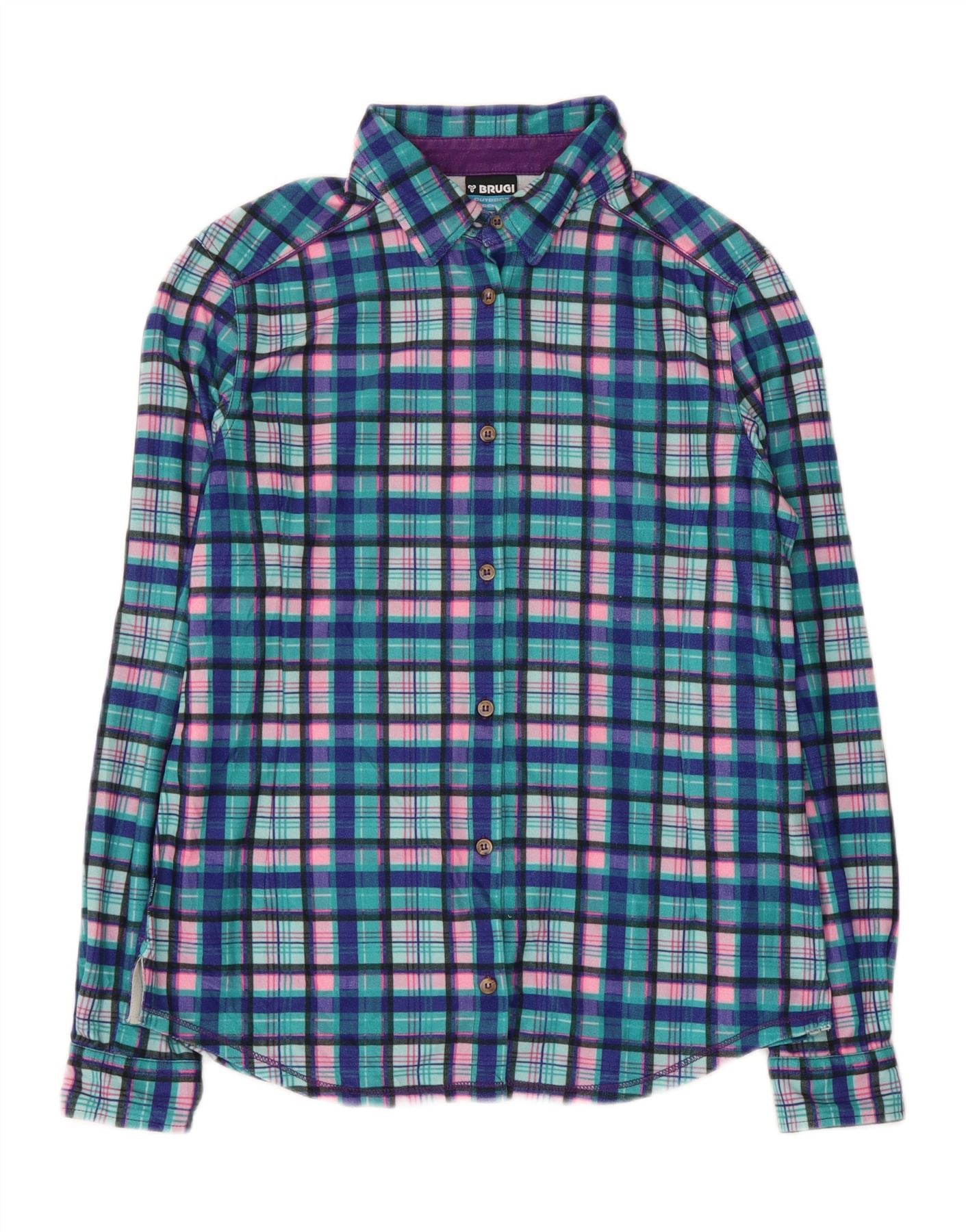 Camisa feminina de flanela BRUGI UK 14 grande xadrez azul