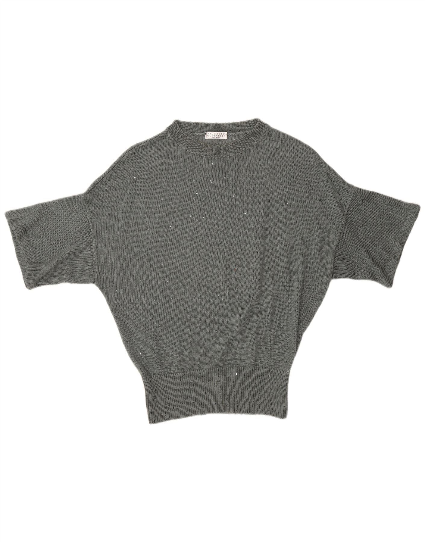 BRUNELLO CUCINELLI Suéter feminino com gola redonda Reino Unido 12 cinza médio