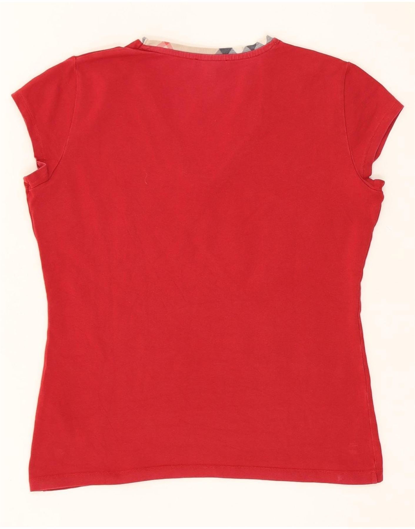 BURBERRY Camiseta feminina cropped UK 16 grande algodão borgonha