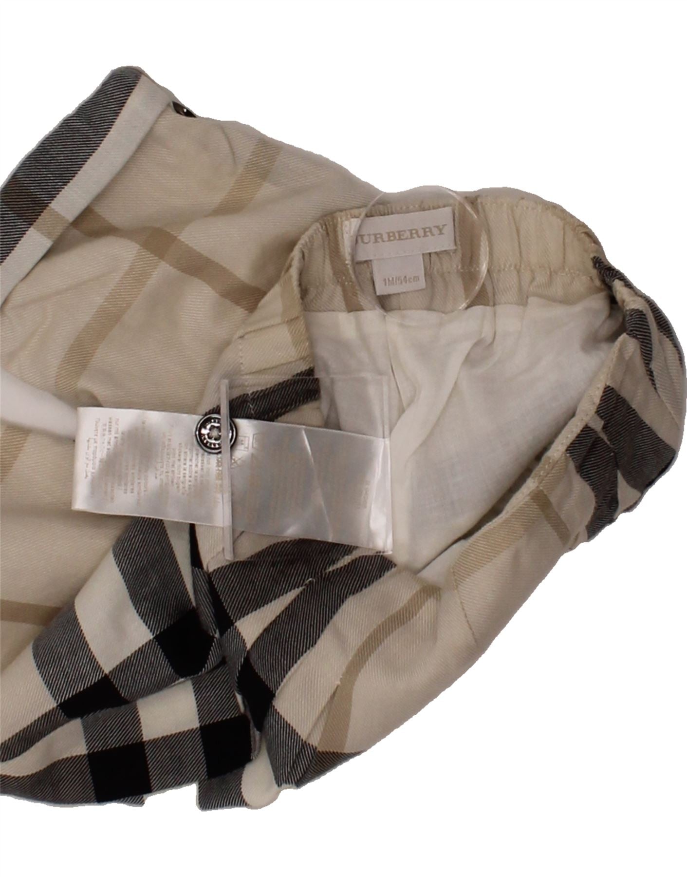 - Descrição da IA: Fabricados pela Burberry, estes charmosos shorts esportivos para meninas apresentam um padrão xadrez clássico em um versátil tom bege. Fabricados em tecido de algodão, oferecem ajuste regular e uso confortável. Os shorts incluem cintura elástica com fecho de cordão, garantindo um ajuste confortável e ajustável. Um toque sutil de botão adiciona um toque de detalhe. Estes shorts usados estão em excelentes condições, prontos para jogos ativos. Tamanho etiquetado 3M/64cm.