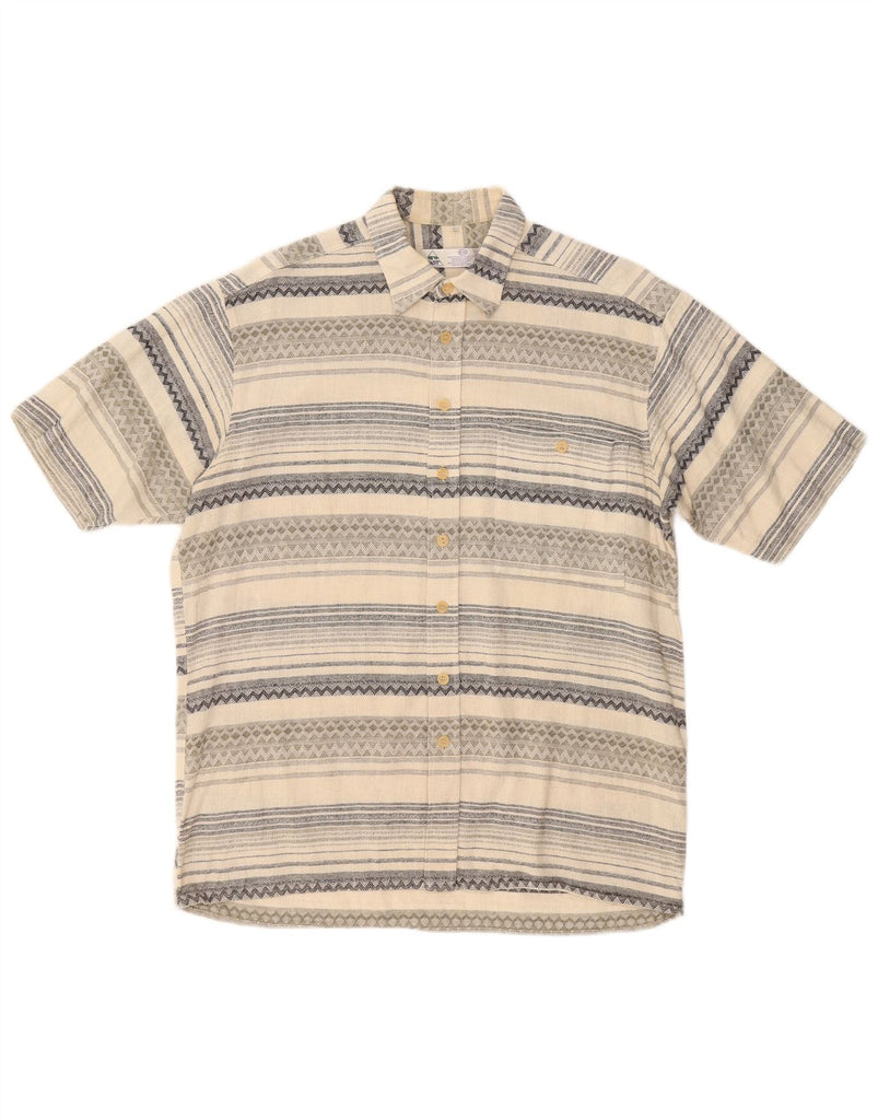 C&A Camisa masculina de manga curta bege médio algodão geométrico asteca