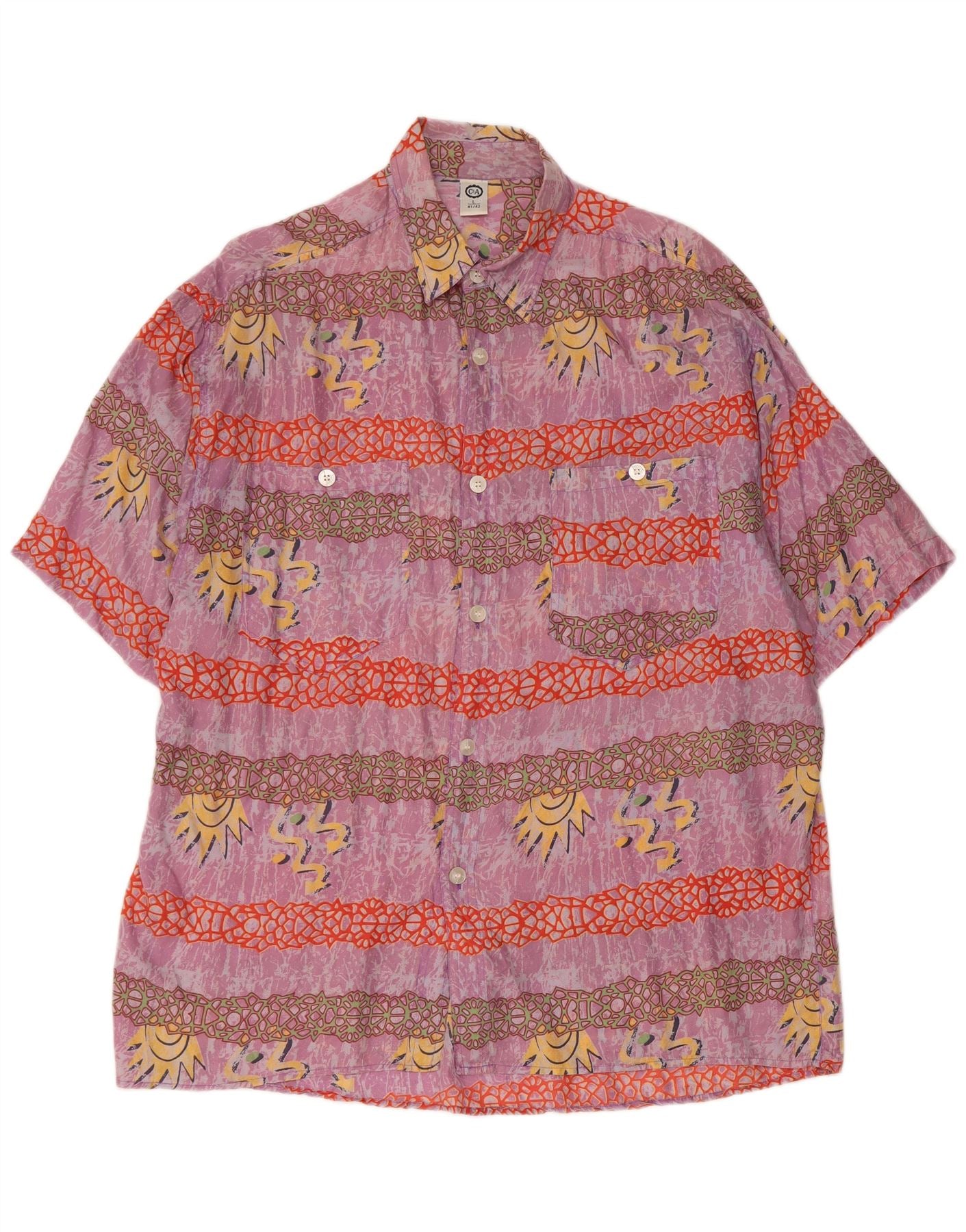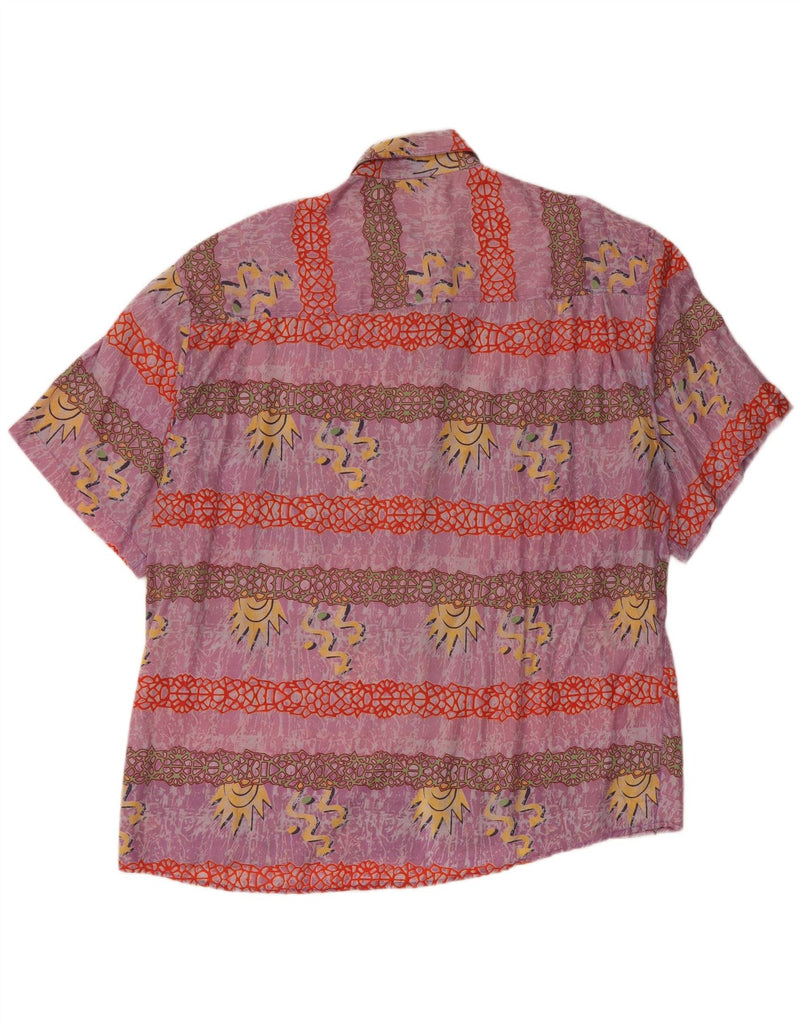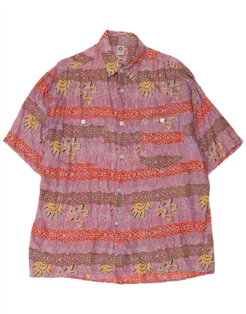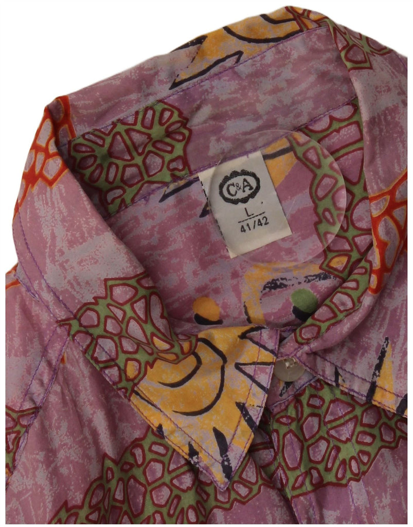 C&A Camisa masculina de manga curta com padrão abstrato tamanho 41/42 seda roxa grande