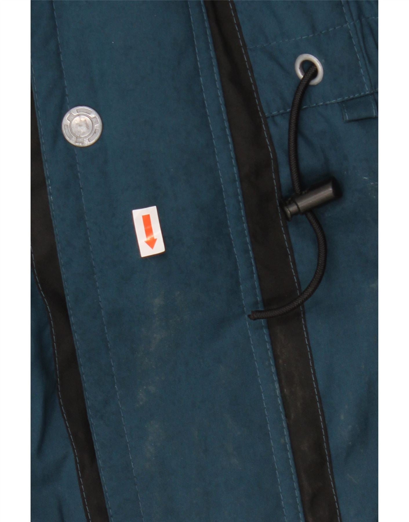 - Descrição da IA: Esta jaqueta Anorak masculina Rodeo é confeccionada em uma mistura durável de poliéster e náilon, oferecendo uma textura tecida à prova de vento. Possui um impressionante corpo principal azul com painéis contrastantes em preto e cinza. As seções cinza exibem um padrão geométrico sutil. A gola alta e o fecho de correr completo proporcionam excelente proteção. Mangas compridas e corte regular garantem conforto. Vários bolsos acrescentam utilidade prática, tornando-o ideal para esportes de inverno.