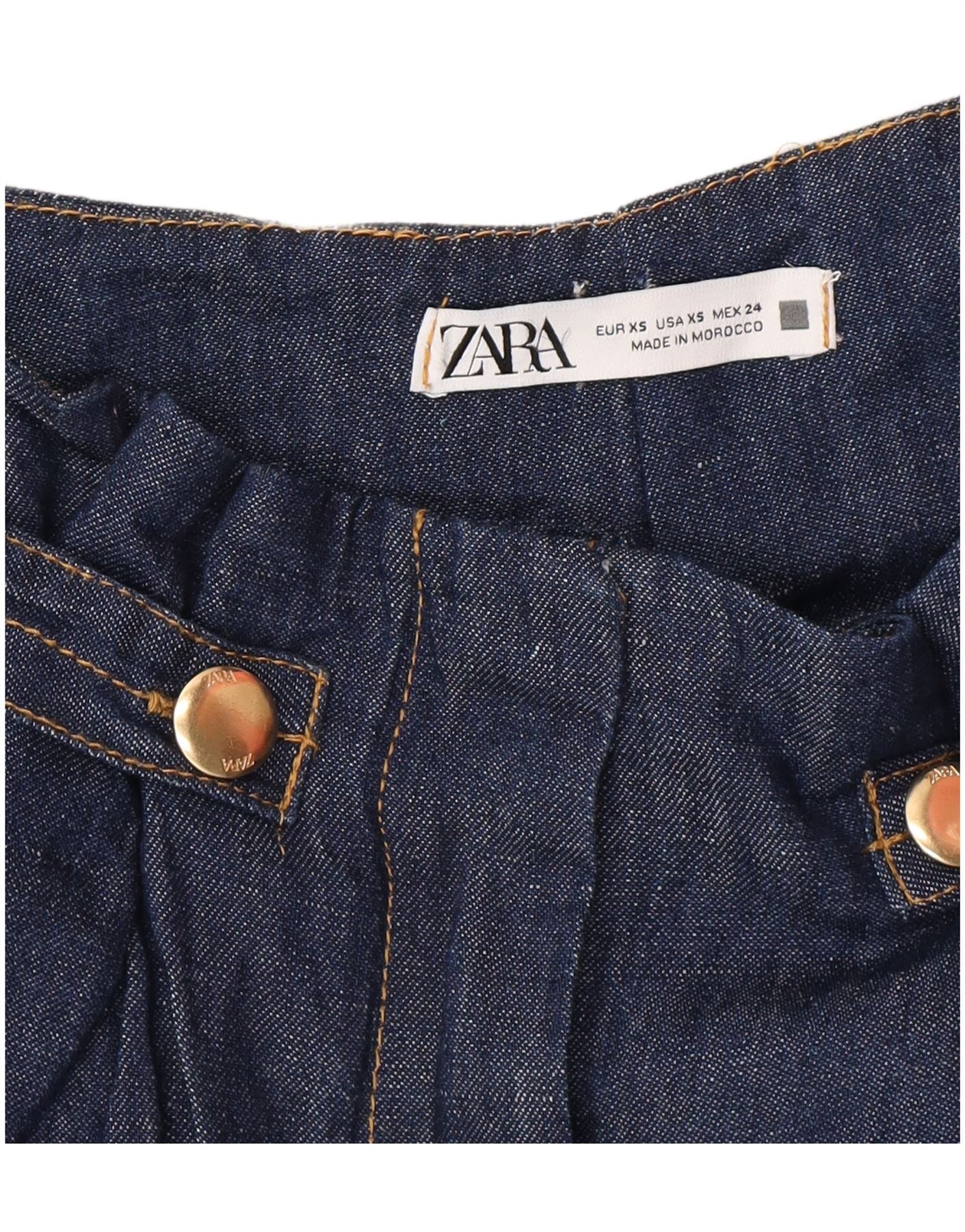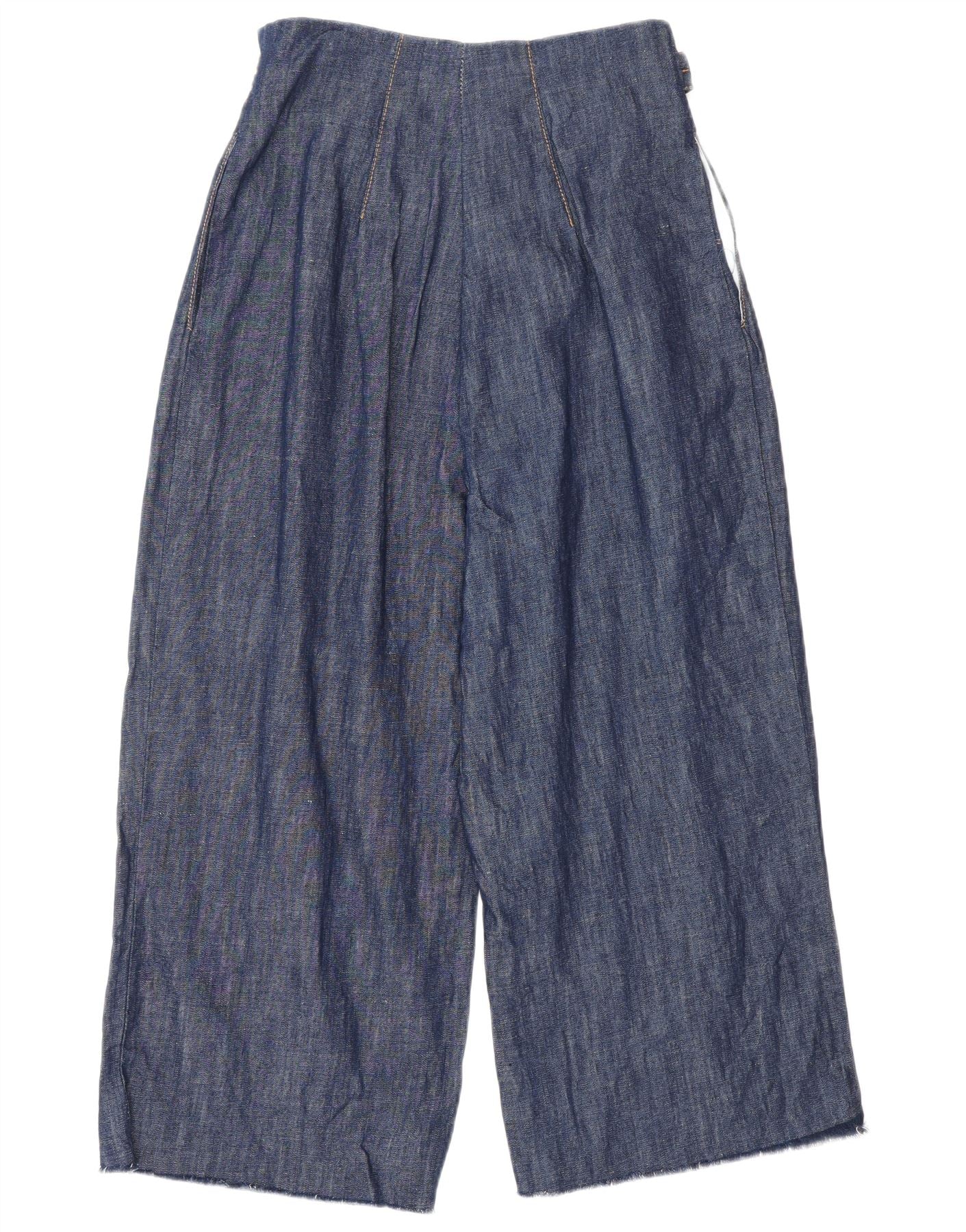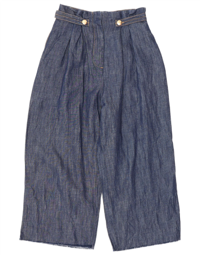 Calça capri feminina de cintura alta com perna larga ZARA XS W24 L21 algodão azul marinho