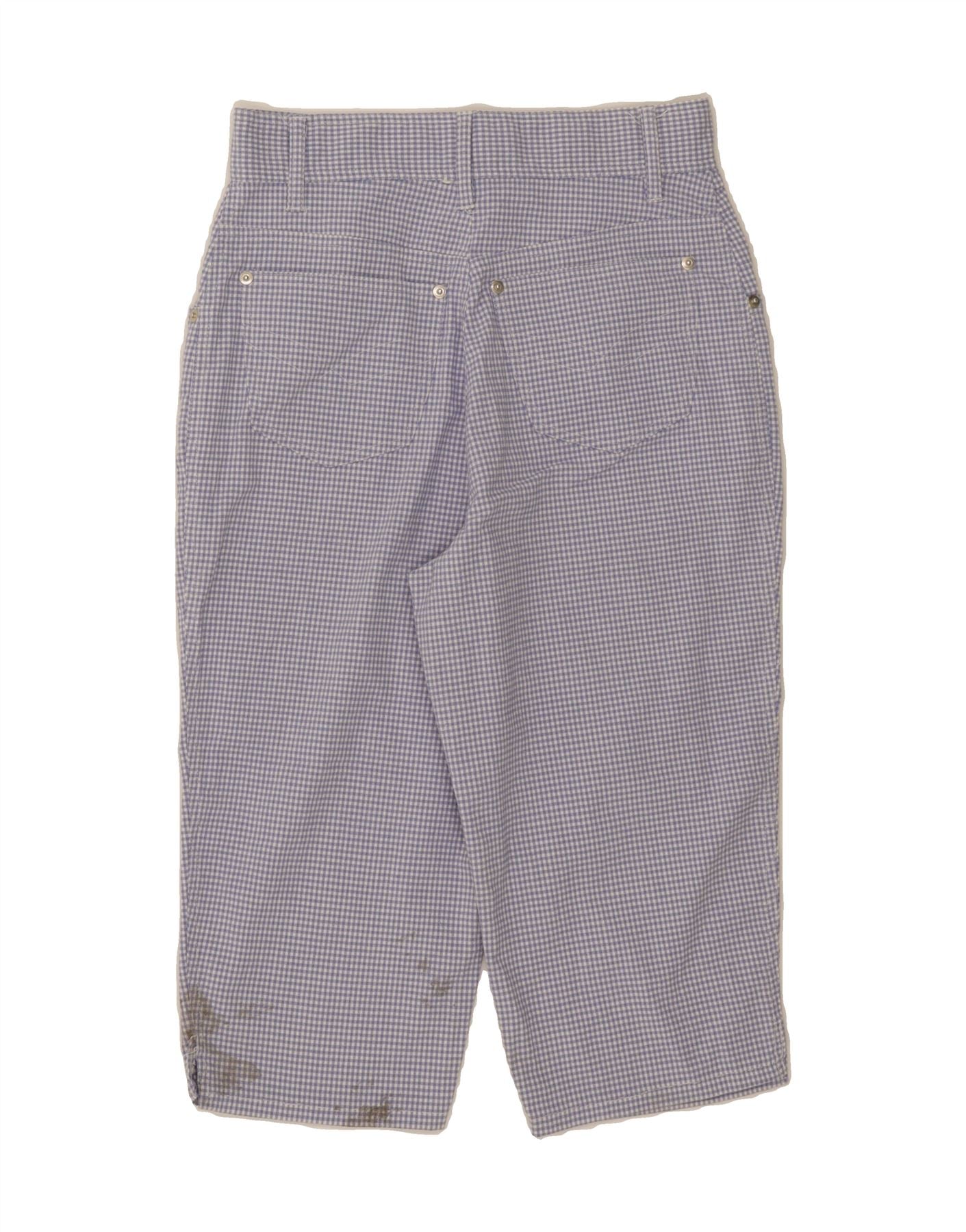 Calça capri feminina VINTAGE reta UE 38 médio W28 L16 azul guingão