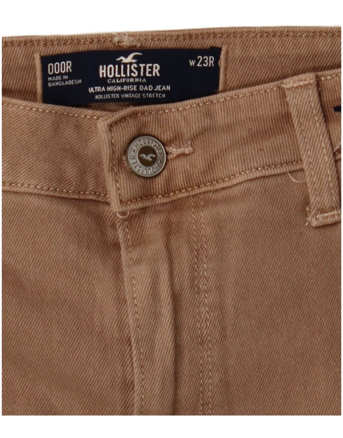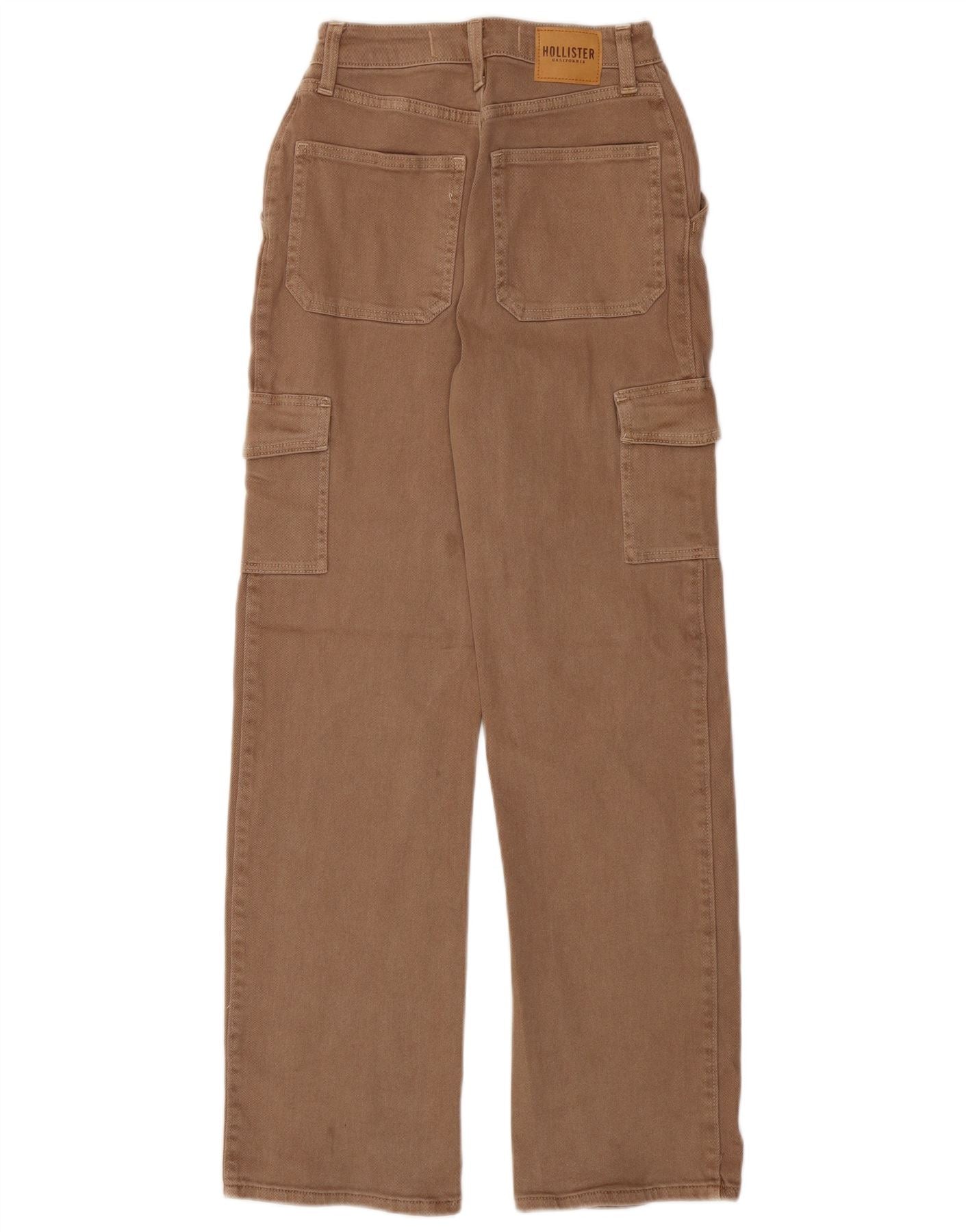 Calça cargo feminina HOLLISTER de cintura alta reta W23 L30 algodão marrom