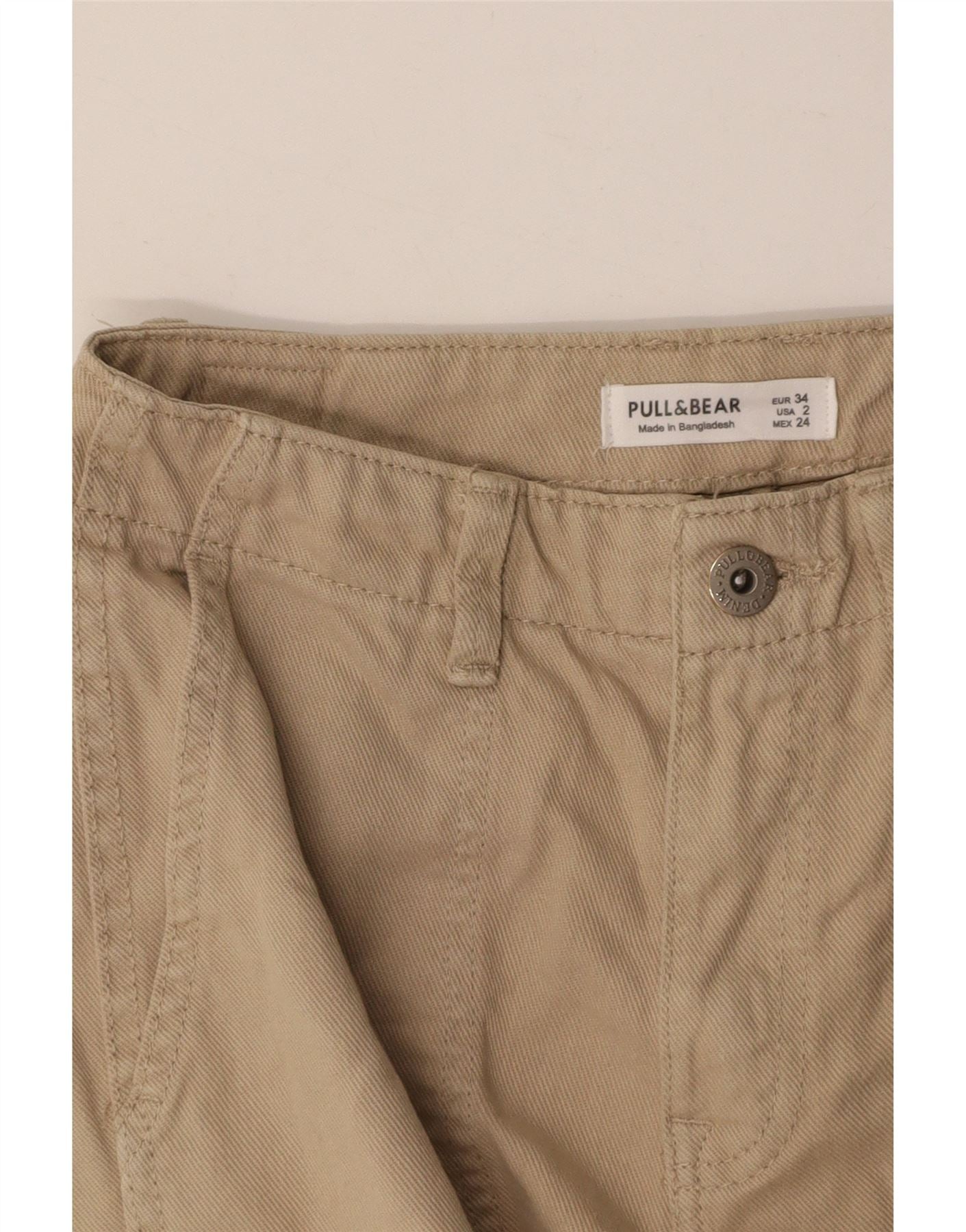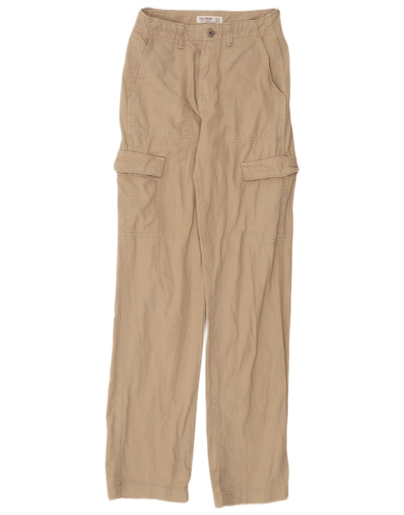 Calça cargo feminina reta PULL & BEAR EU 34 2XS W24 L33 algodão bege