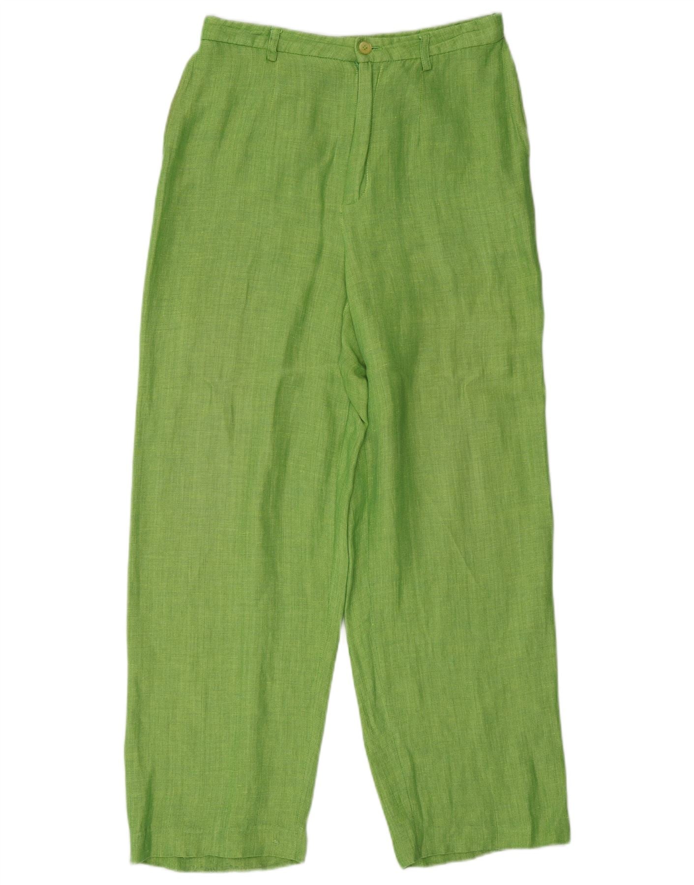 Calça chino feminina MEXX cintura alta solta ajuste Reino Unido 12 médio W27 L27 verde